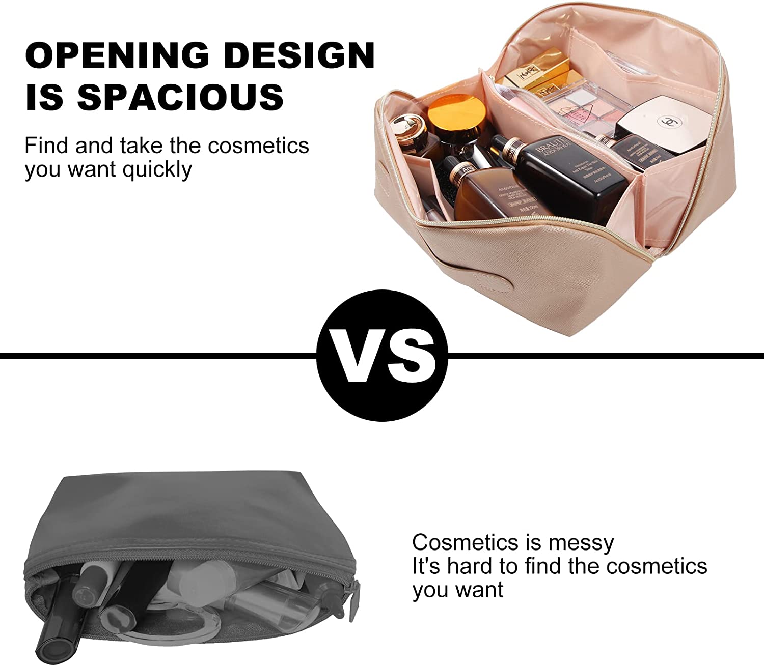 ?LARGE-CAPACITGY COSMETIC BAG :The large capacity travel cosmetic bag is designed with multiple divisions and compartments, which can store not only your cosmetics,makeup bursh,essential oils, Toiletries kits, valuables, etc. It can be organized to accommodate the cosmetics and makeup tools you need;