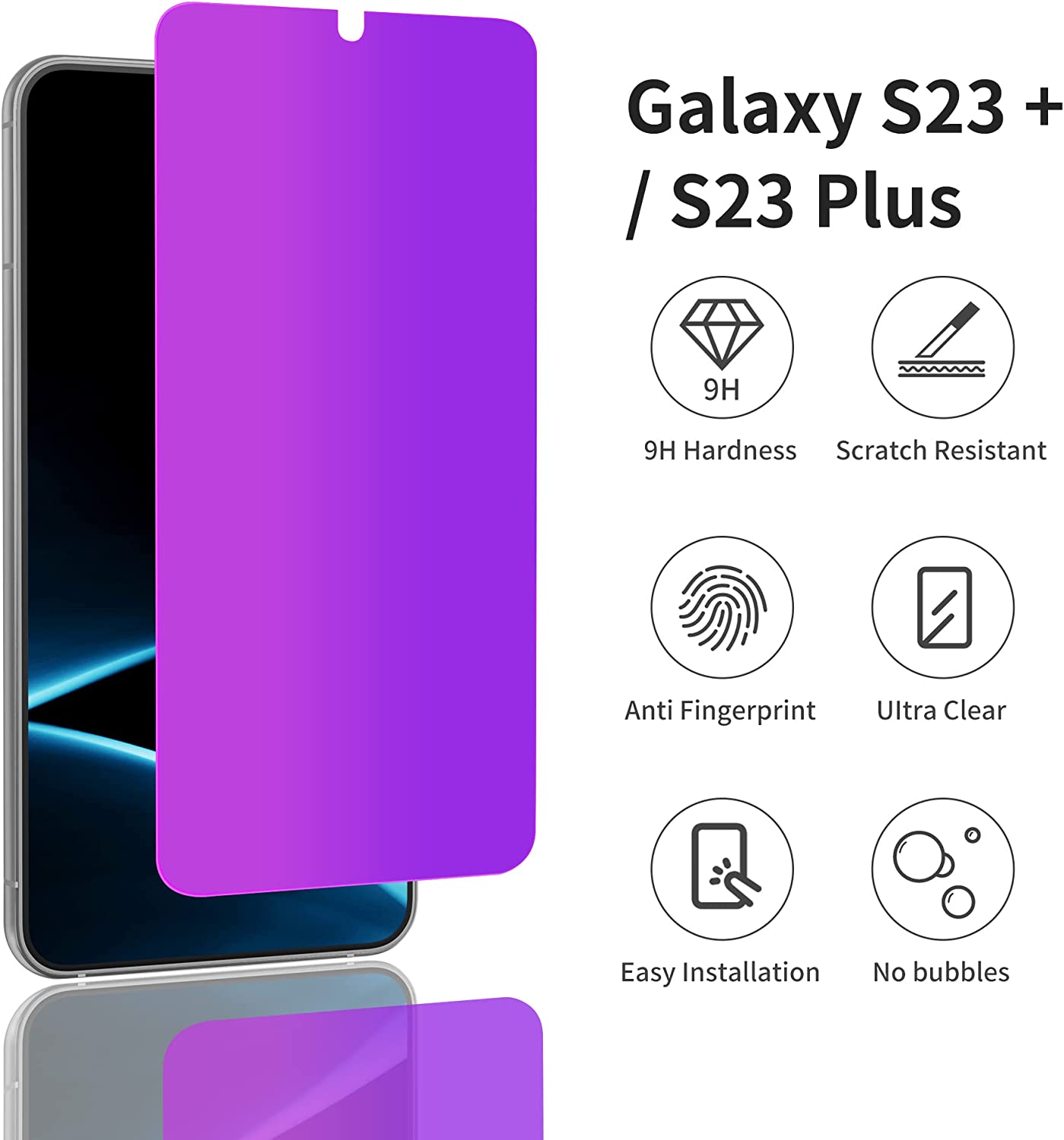 【Personalize】Unlike other Galaxy S23+ screen protectors, our color changes from blue to purple at different angles, making your phone's color changeable, cool, and unique.