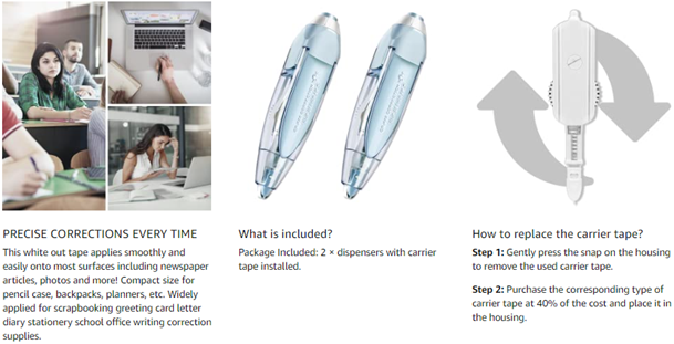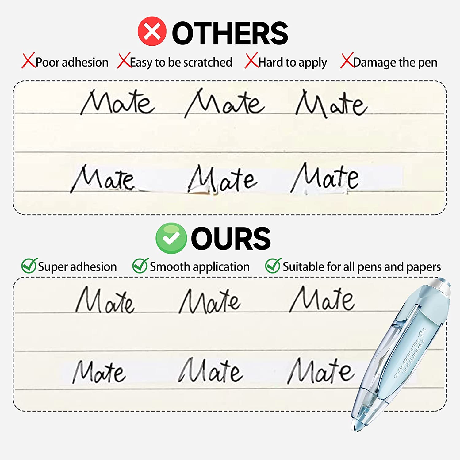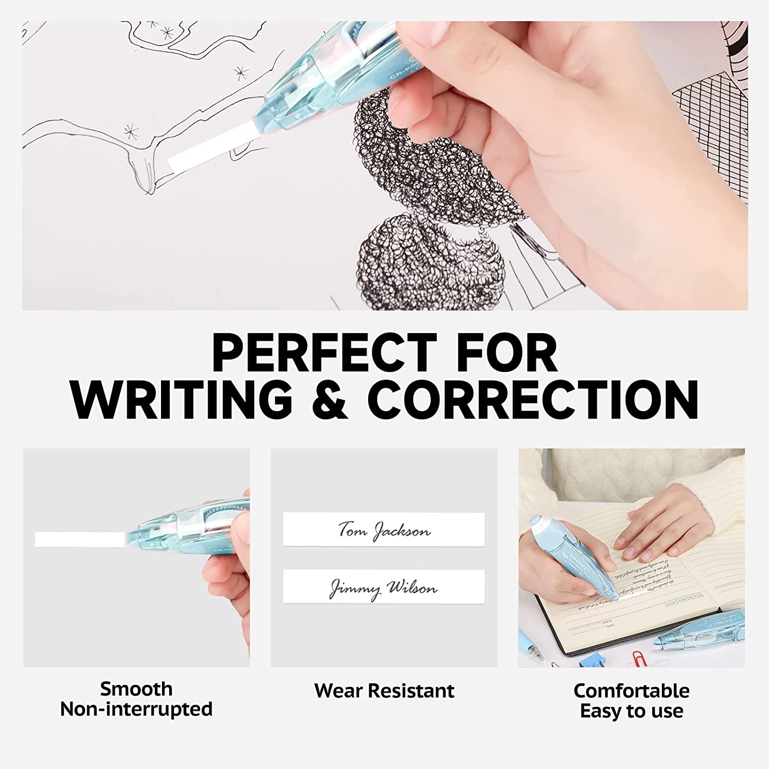 • PRECISE CORRECTIONS EVERY TIME - All you have to do is gently run the correction tape on the paper for instant correction! This white out tape applies smoothly and easily onto most surfaces including newspaper articles, photos and more!
