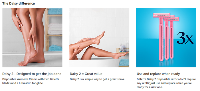Gillette Daisy Classic disposable razors for women have a fixed non-pivoting head, twin comfort blades, a moisture-smooth lubrastrip and comfort handle to give you a close shave. Gillette comfort razor blades are thin to glide effortlessly for a smooth shave and the comfort handle is designed for a secure grip. The Lubrastrip provides lubrication with each stroke for a gliding shave. Use and replace when ready, the Daisy Classic disposable razors don’t require any refills; just use and replace when you’re ready for a new one. Daisy Classic is a simple way to get a great shave. Each package contains 18 Daisy Classic women's disposable razors in pink. A great value for a great shave.