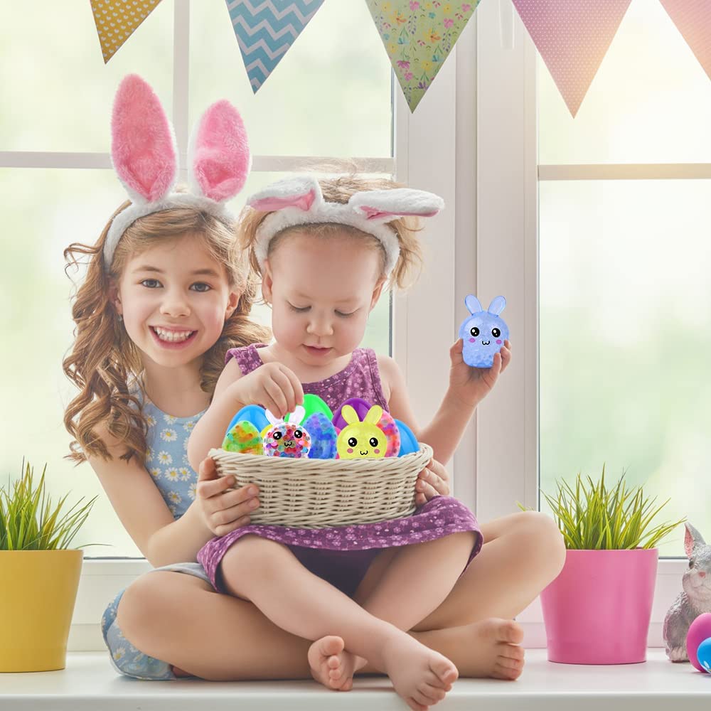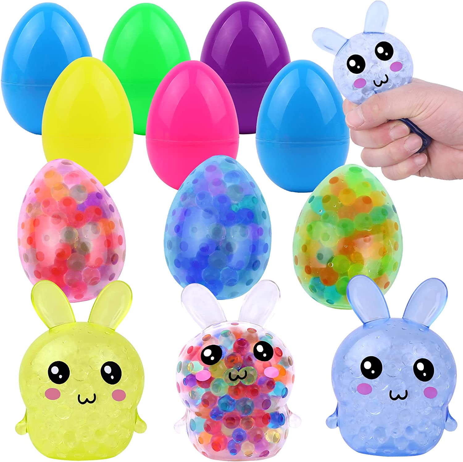 【Easter Fidget Toy Pack】 Package includes 6pcs plastic Easter eggs with Easter stress ball toys inside(3pcs Bunnies, 3pcs Eggs), soft and cute, perfect for kids and adults to relieve stress. 6pcs Easter fidget toy are perfectly hidden in the egg and will surprise your children! Colorful Easter eggs are more visible, easy to find for kids on Easter egg hunting games.