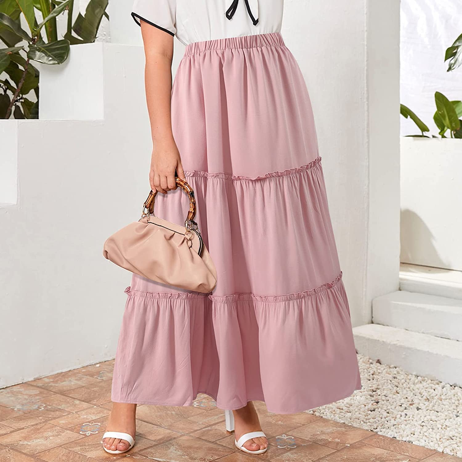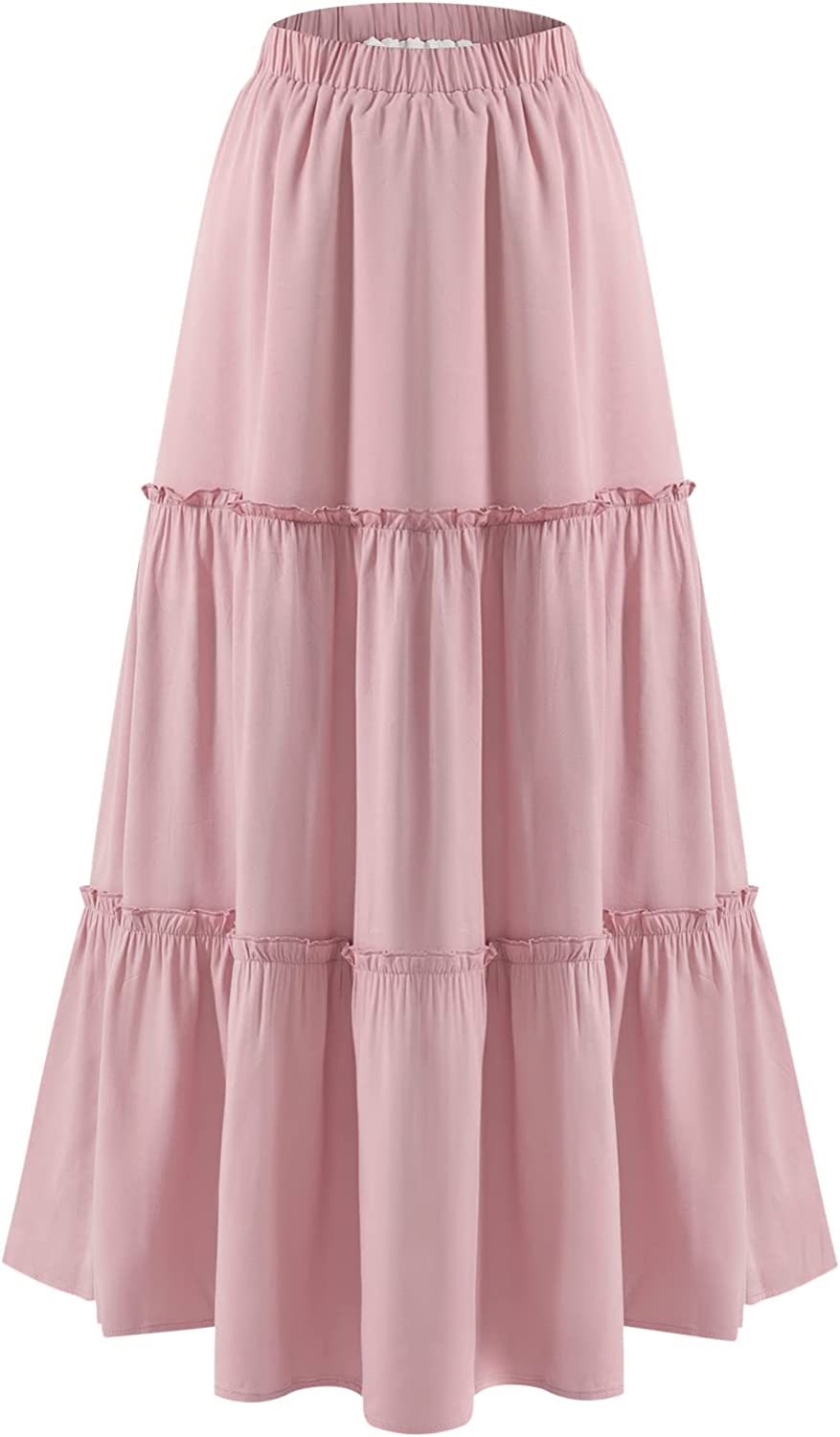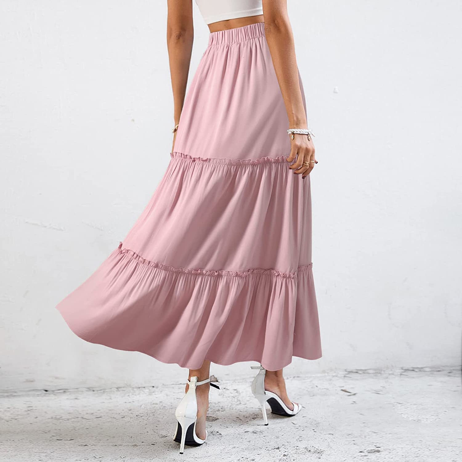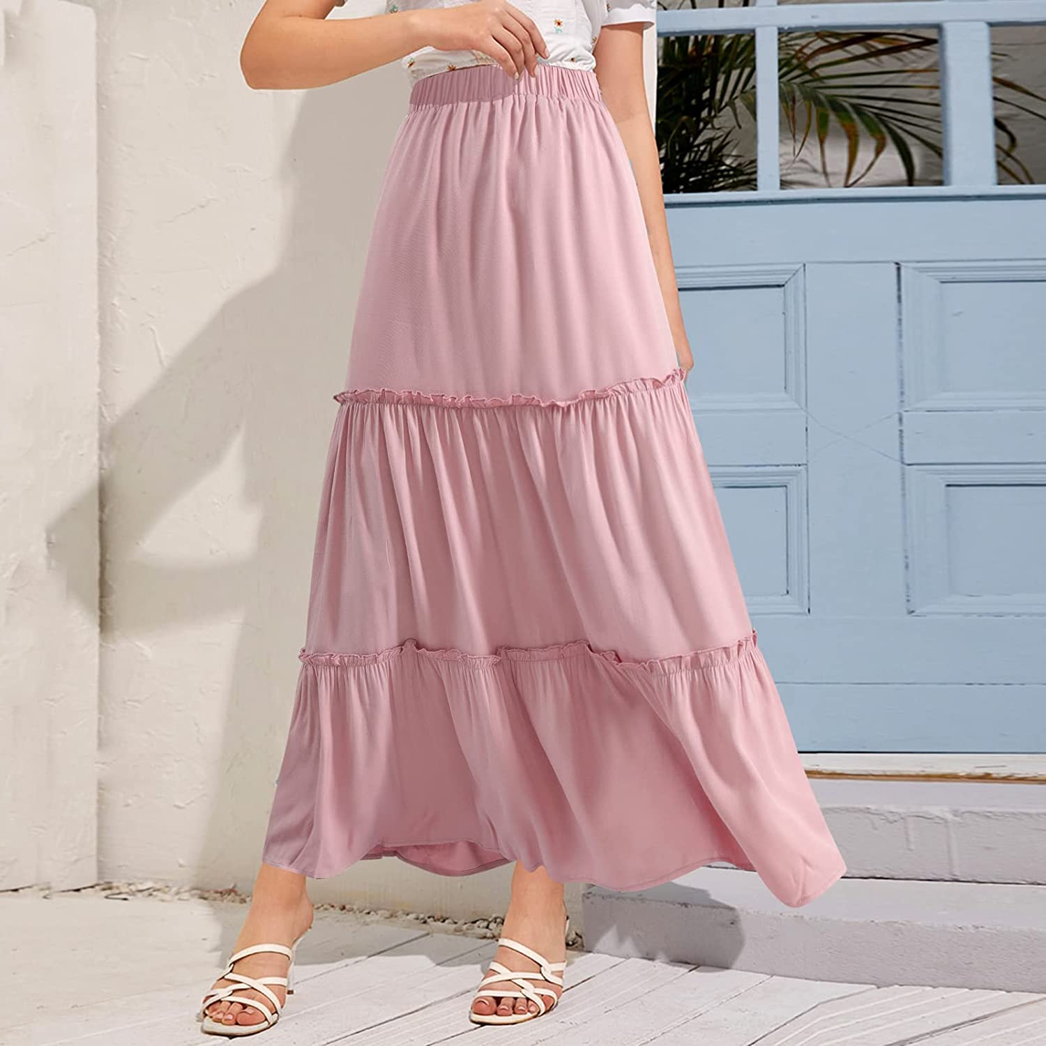Stylish Design: This classic solid color long maxi skirt is simple but fashion. A-line, ruffle layered, stretchy high waist, bohemian style, floor length, easy dress up or down. No matter what body type you are, this must-have skirt is a good choice for your summer day.