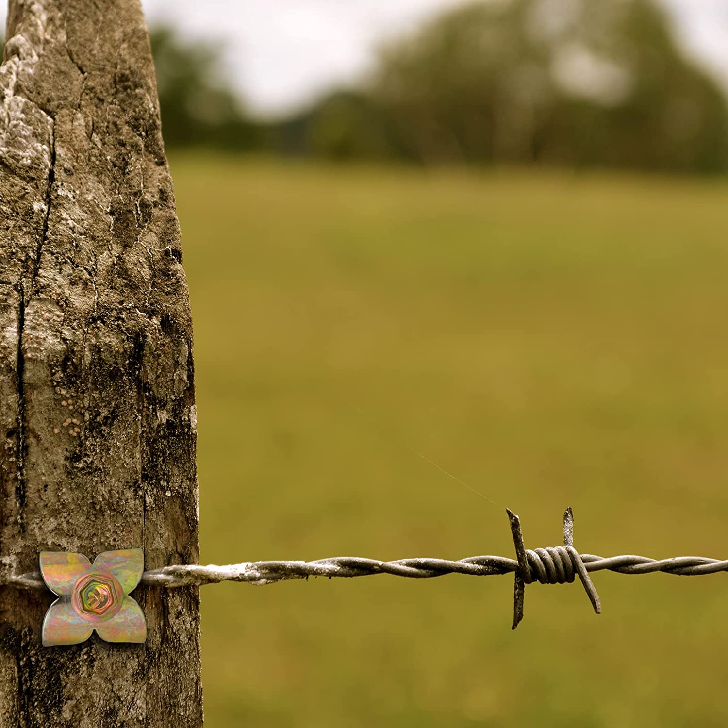 HIGH-QUALITY FENCE TAGS: Designed to attach barbed wire, regular wire, sheep wire, mesh wire and more to fence posts, hedges, saplings and trees. Specially designed for fences, the perfect match of iron pieces and screws, you can finish your fence work quickly and they will last a long time on the stakes.