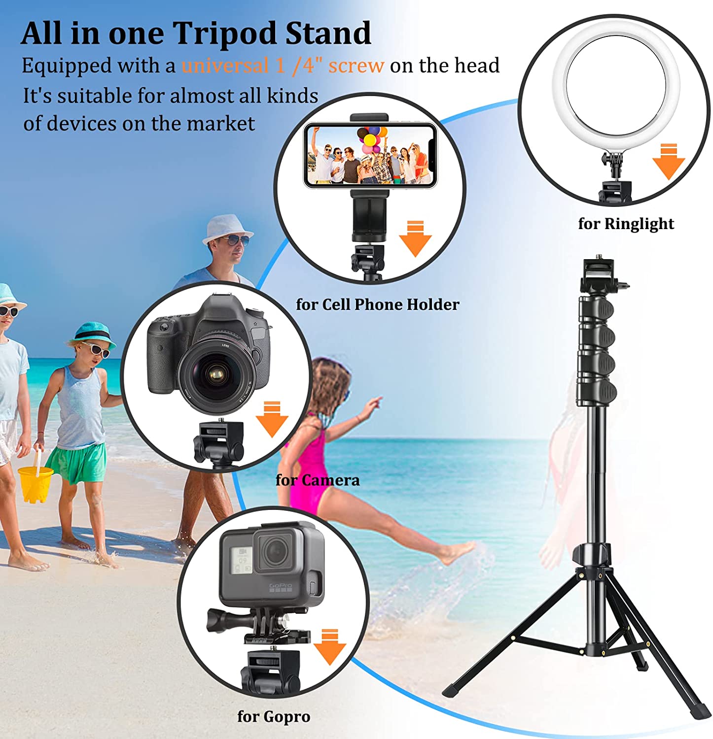 【WIDE COMPATIBILITY 】 Tripods for cell phones come with a universal phone holder, which can be freely adjusted from 2.4" to 3.6", suitable for phones and android. Coupled with the top of the stand, universal 1 /4" screws can be connected to most digital cameras, sports cameras, and GoPro.