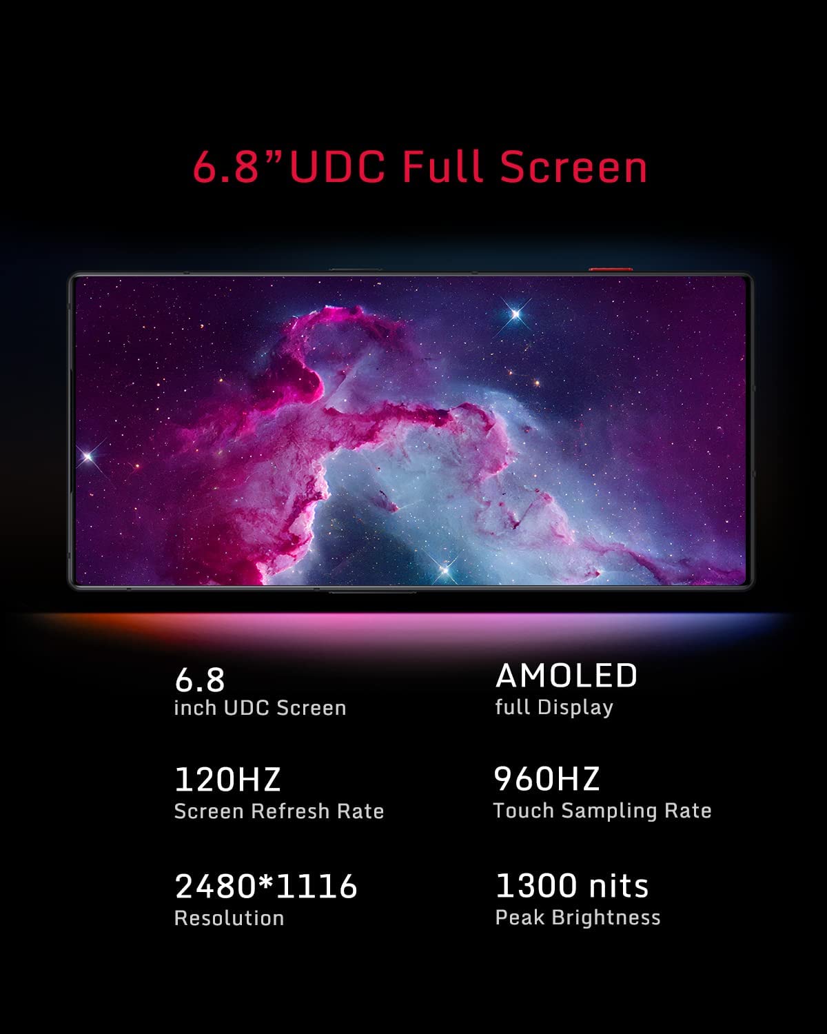 • 【6.8" FHD Full Screen】Gaming Phone with a 120Hz refresh rate, this 6.8" FHD Full AMOLED screen delivers beautiful HD+ visuals at up to 120 frames per second. With a 960Hz touch sampling rate for multi fingers, the Cell Phone delivers ultra-fast touch and precise response, giving you a serious competitive edge while gaming. The 5G Smartphone have also Under-display Fingerprint Sensor and 16MP Under Display Camera.