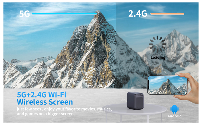 - 5G WiFi and Bluetooth Projector : WANBO WiFi projector has ultra-fast 5G WiFi, providing a lag-free streaming experience for online gaming and seamless video streaming. It also features a wireless screen sharing function, which allows you to conveniently watch your favorite content by streaming from Android devices. Additionally, the projector supports Bluetooth 5.1, making it easy to connect your preferred headphones, speakers, or other audio equipment.