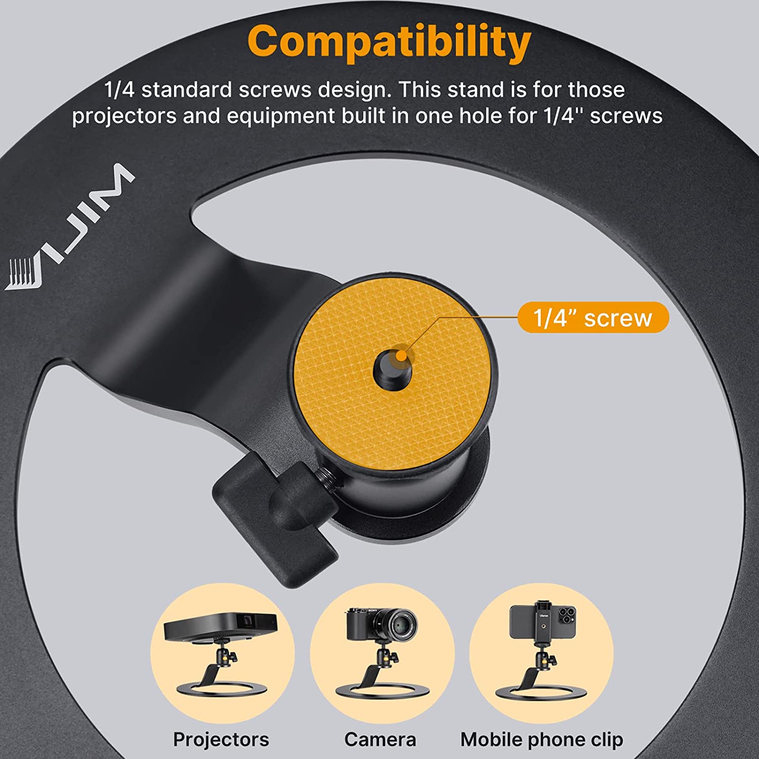 - Equipped with a standard 1/4 inch screw, the projector stand is not only suitable for the mini video projectors, also great for camera & smartphone clip for photo video shooting in low angle.