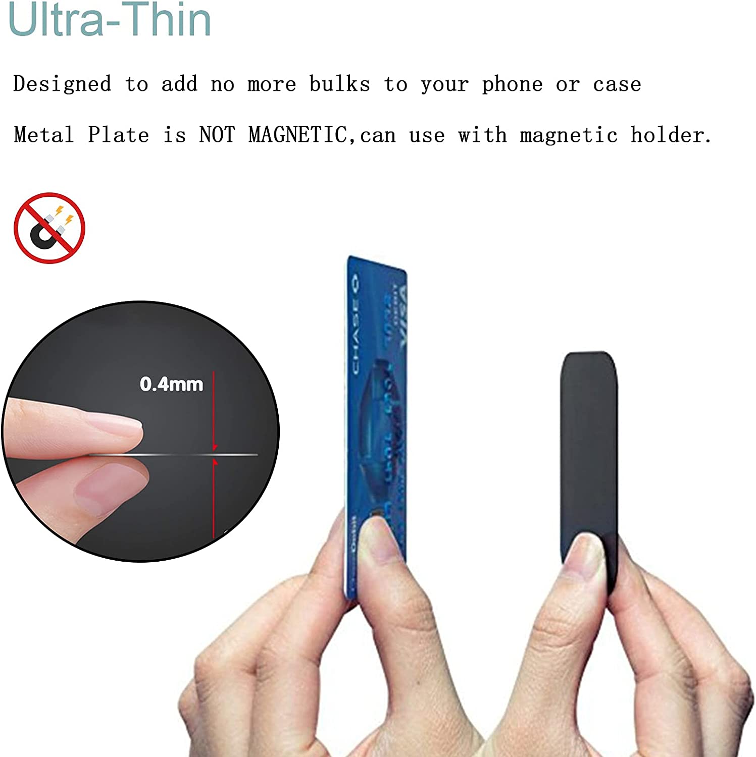 Thin phone magnet 4.5 cm x 6.5 cm rectangular metal plate (2Pcs), diameter 4 cm ( 2Pcs) round metal plates