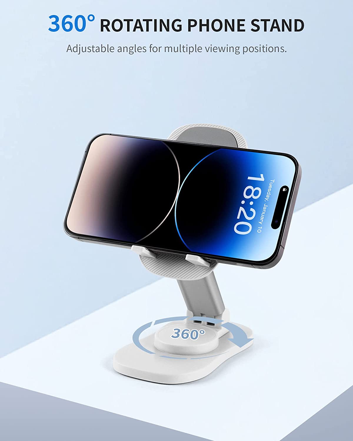 - HANDS-FREE ENTERTAINMENT - Having this desktop phone holder to prop up your phone and adjust it to the ideal position, you can free your hands while watching videos, making phone calls, using Facetime, and viewing recipes. Plays a good role in your office, kitchen, nightstand, or dining table.
