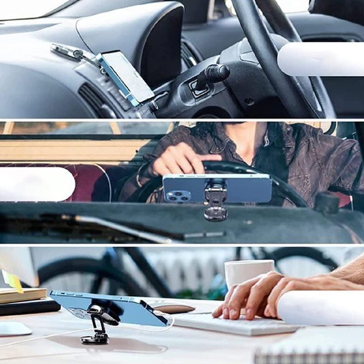 FEELNOW 2023 New Alloy Folding Magnetic Car Phone Holder, Magnetic 360° Car Phone Holder Stand Dashboard Folding Bracket Universal (Black)