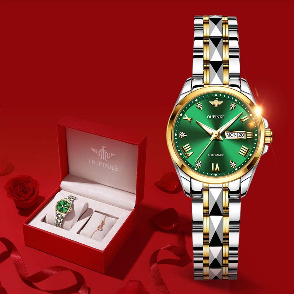 • ❤Automatic watch for women:Imported Japanese automatic mechanical movement, support manual and automatic winding. When wearing, it will automatically wind up with the swing of the arm, and the energy reserve is up to 50 hours or more, avoiding frequent manual winding.