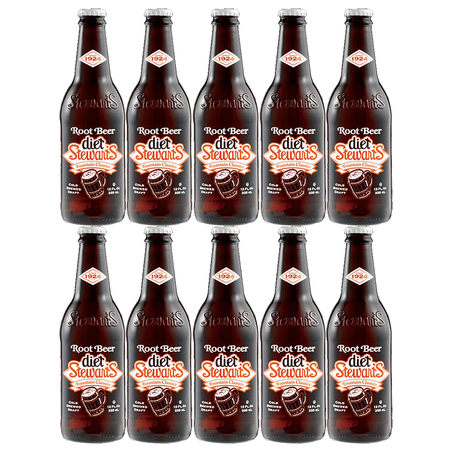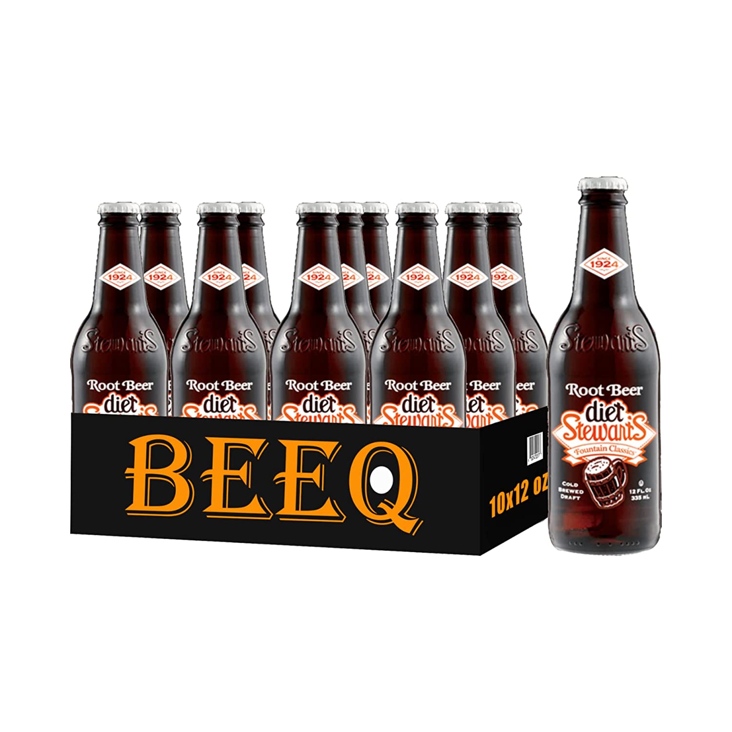 BEEQ BOX - ( Pack of 10) Stewart's Diet Root Beer, 12 fl oz Glass bottles
