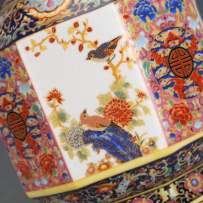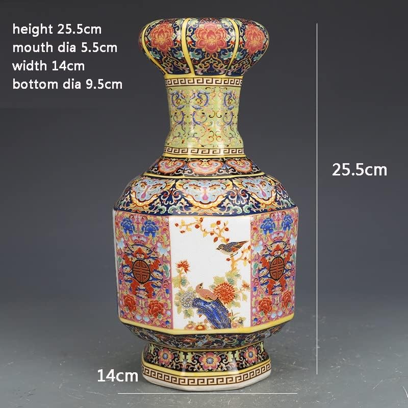 ZSEDP Antique Ceramic Vase Enamel with Flower Birds Pattern Old Ancient Porcelain Offcial Kiln