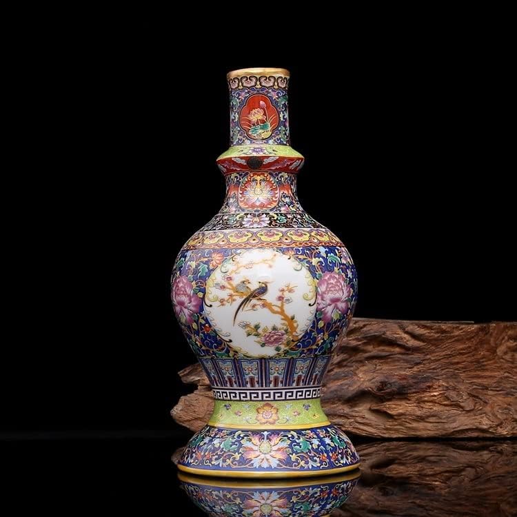 ZSEDP Jingdezhen Antique Enamel Vase Pagoda Vases Flowers and Birds Pattern Ancient Porcelain