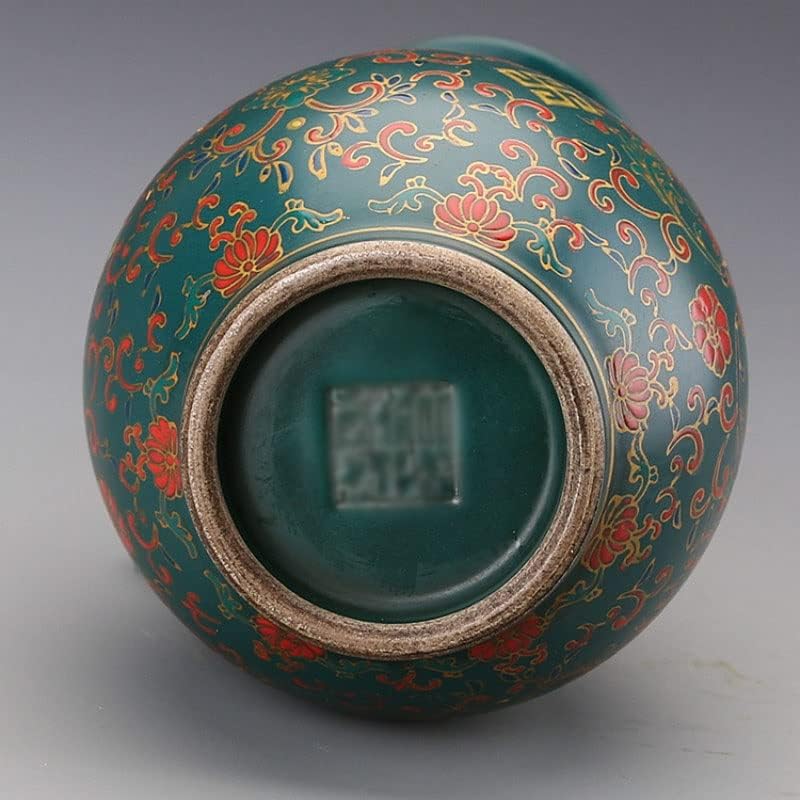 ZSEDP Classic Antique Chinese Style Porcelain Green Glaze Enamel Jingdezhen Flower Vase for Collections
