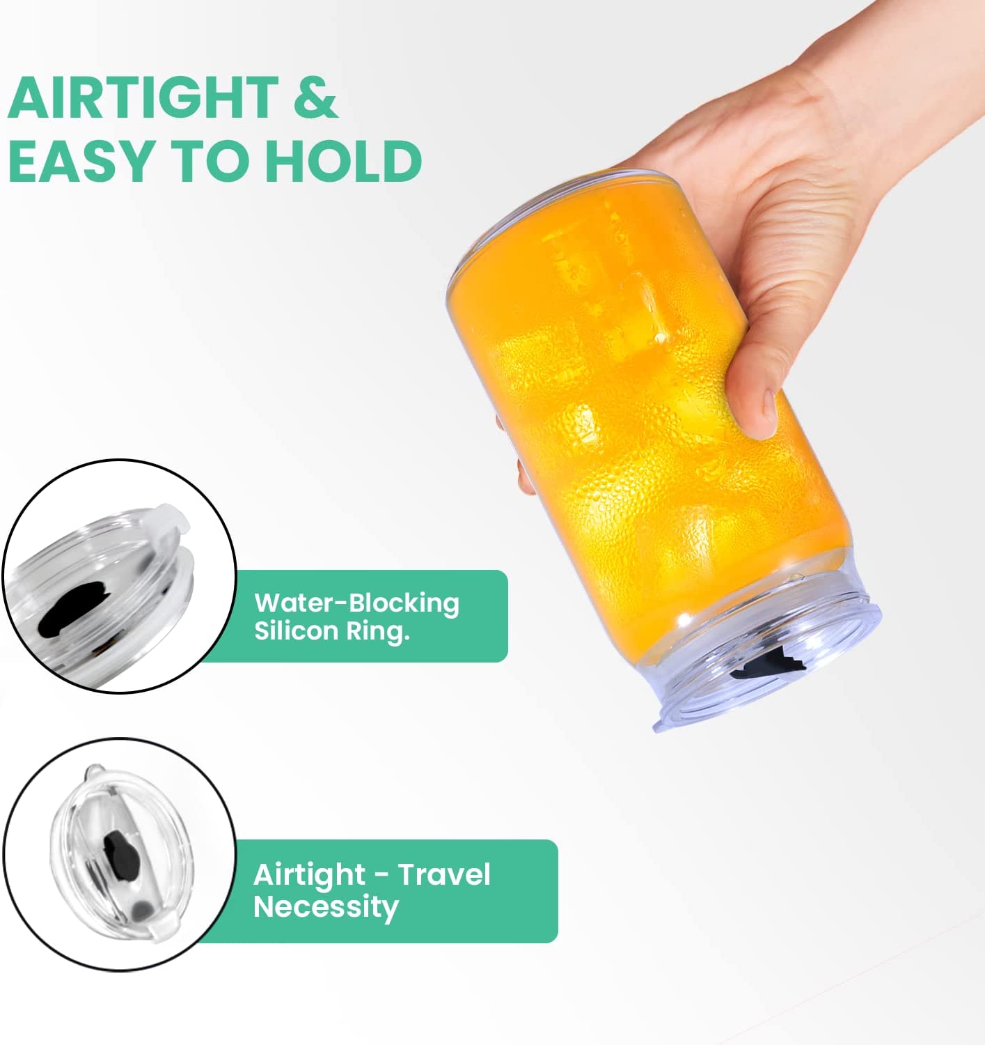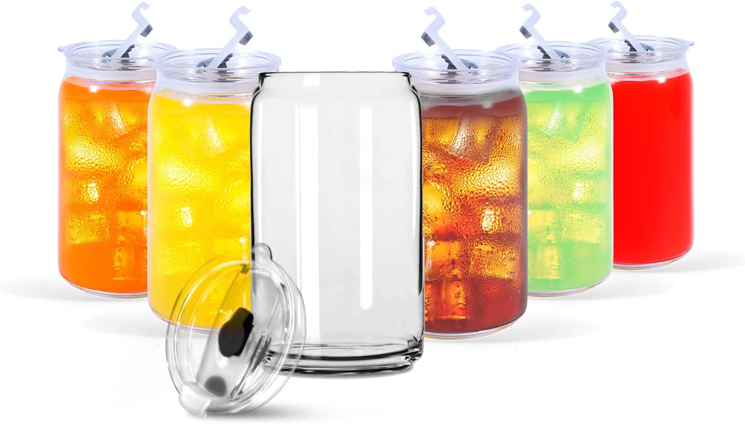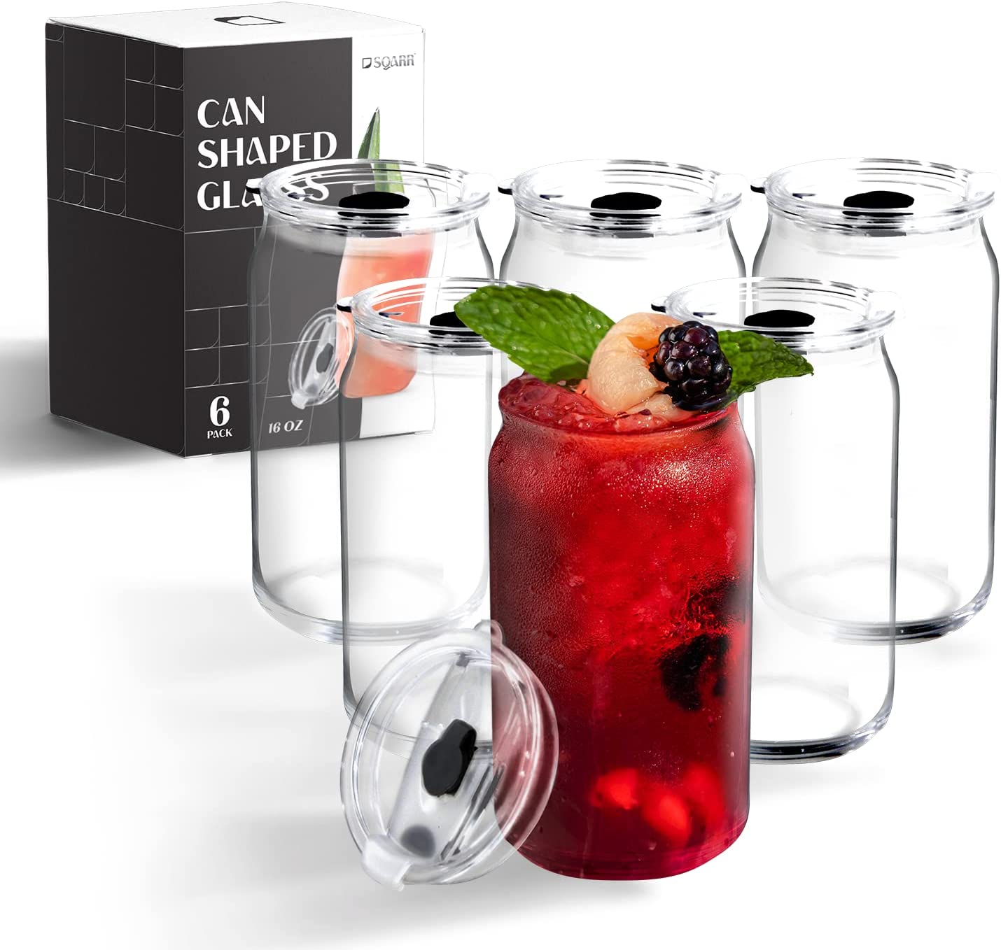 • ✅ PERFECT FOR ANY OCCASION – It doesn’t matter what drink you’re drinking if it’s served in the right glass cans, and this glass cups with lids is exactly what you need! Designed to capture the whole rich foam of a delicious soda or beer, or create a surprising presentation for your favorite cocktail recipes, perfect for everyday life, weddings, parties, restaurants and more.