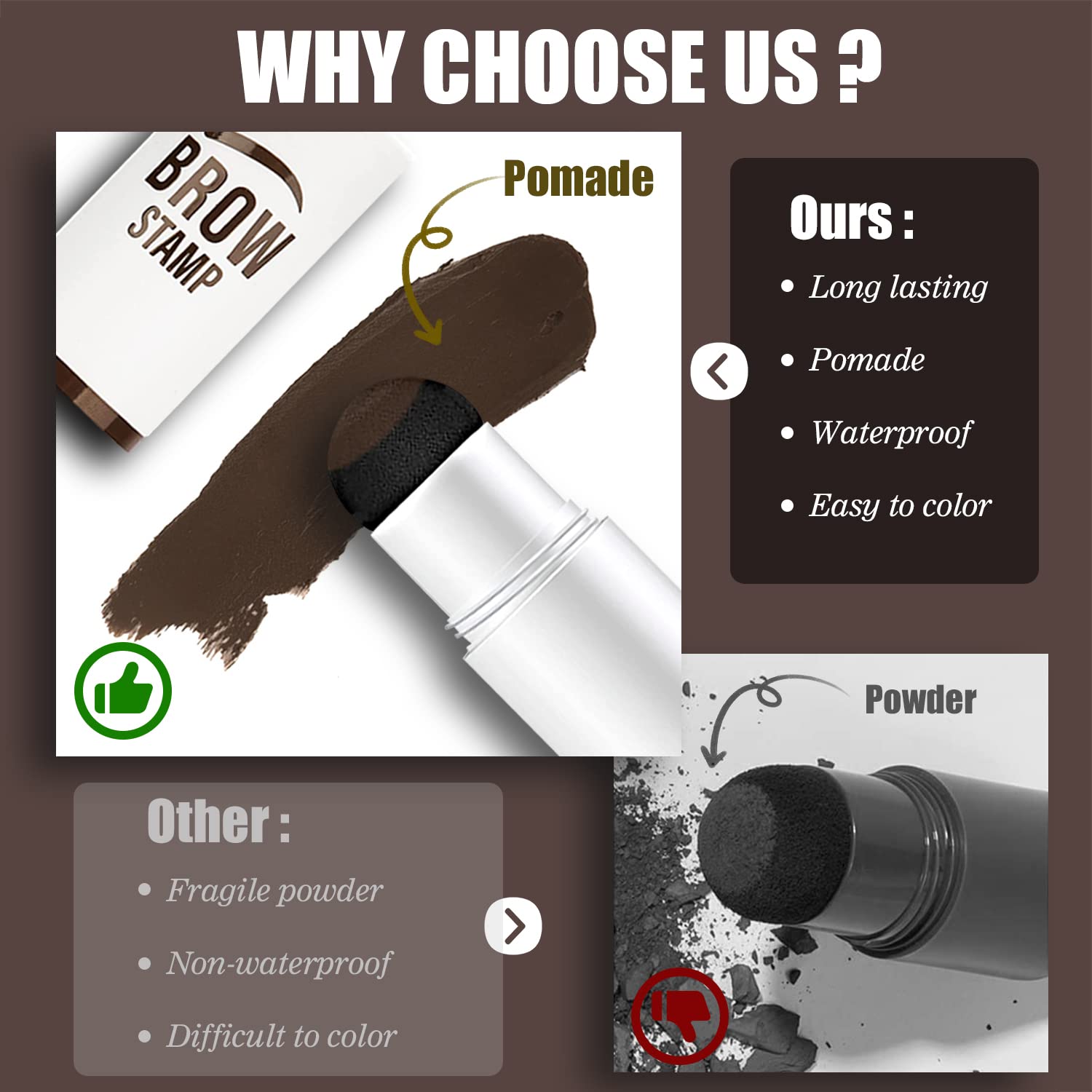 【WATERPROOF & LONG-LASTING】Unlike other eyebrow stamp (made of powder) , our durable eyebrow stamps are made of high material POMADE for stronger adhesion and longer lasting eyebrow makeup, more waterproof and sweatproof than normal eyebrow powder. After 24 hours and a sweaty workout, still looks clean and natural. When you are ready to take them off, simply wipe clean with your favorite make-up remover.
