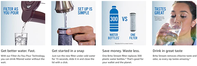 BPA-free Brita Stream Replacement Filters are made with Filter-As-You-Pour technology so you can get filtered water 10X faster compared to the market leading pitcher system. Made with proprietary dual-layer filtration technology and containing activated carbon to reduce chlorine taste and odor., These filters deliver great-tasting water and maintain a healthy level of fluoride, an additive in water that promotes strong teeth (applies to fluoridated municipal tap water). The filters have an easy-hold grip and click button for simple insertion and removal. Change these filters every 40 gallons, about 2 months for the average family, for best performance. The innovative carbon form means no black flecks. One Stream filter can replace 300 standard 16.9 ounce water bottles. Drink cleaner, great-tasting water with Brita.