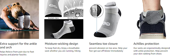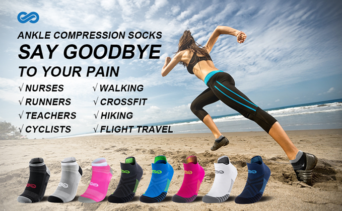 - [360 PROTECTION FOR YOUR FEET] The no show compression socks with 3d circular progressive pressure design provide you with permanent all-around protection, ensure your feet at the right angle to reduce sports injuries while providing ankle support