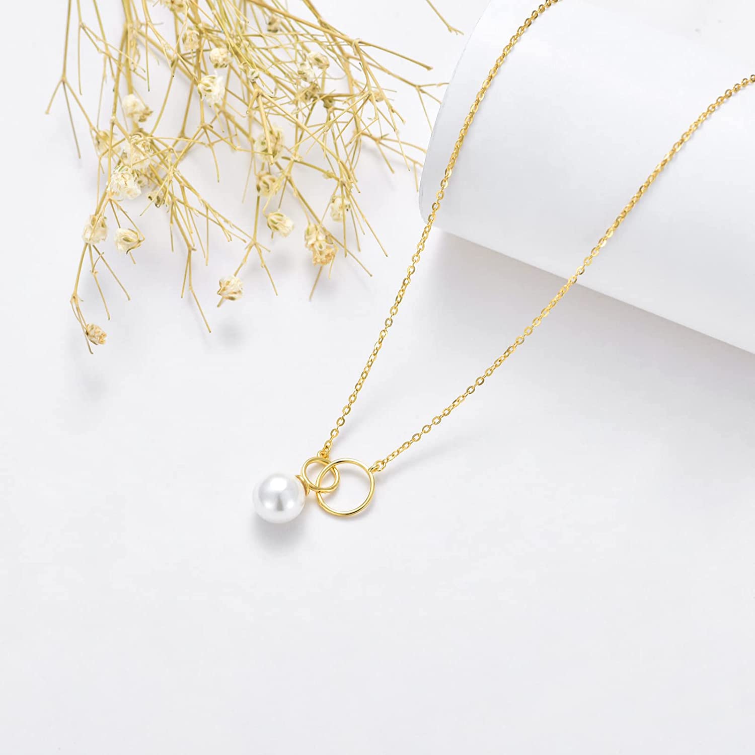 • ?Gift for Her: This 14k real gold double circle pearl necklace packaged in a box is a great gift for wife, Girlfriend, Daughter, Mom, Sister, Best Friend, or even a Grandmother and Her.