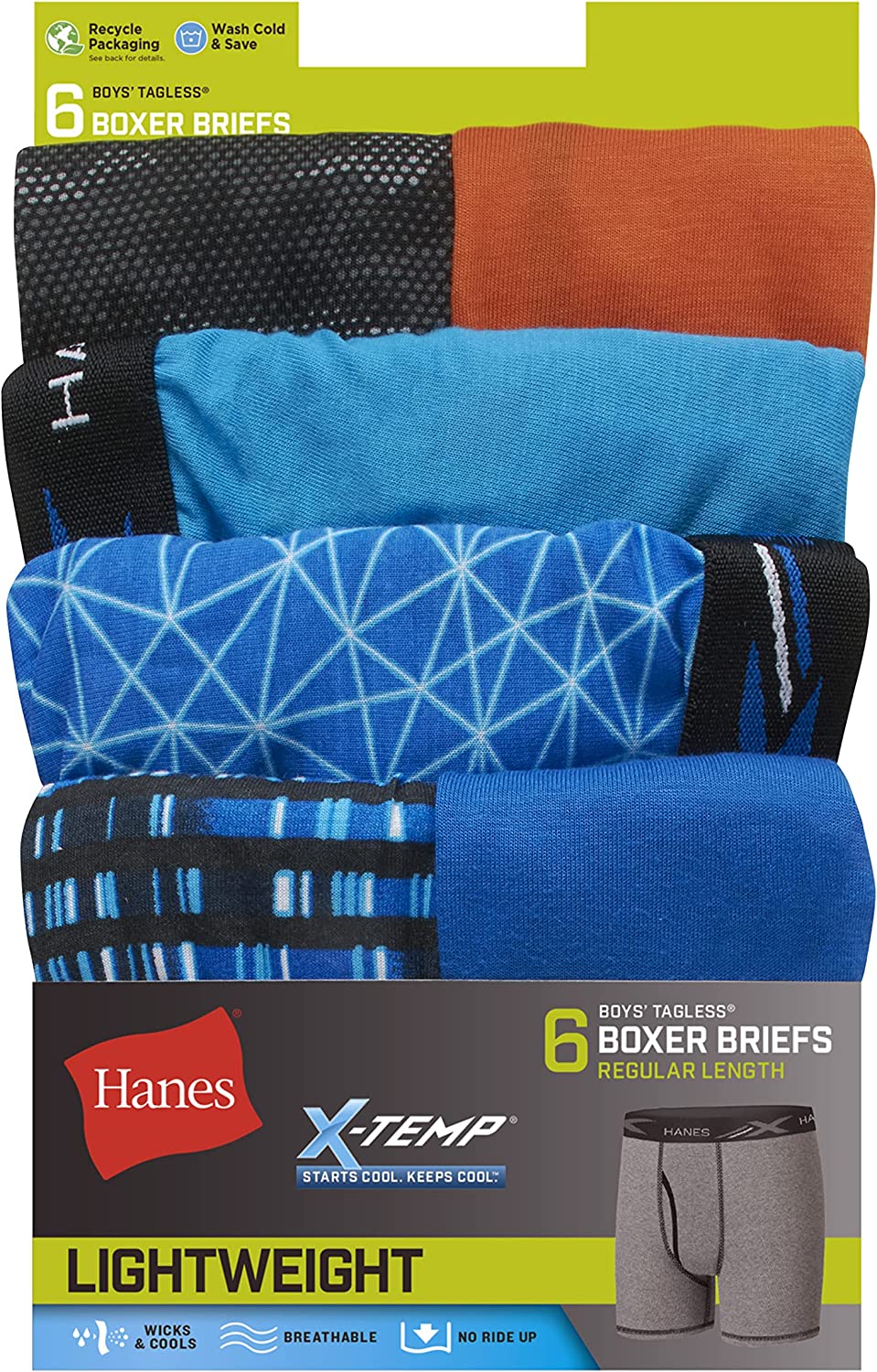 VALUE YOU EXPECT – Each boys' underwear value pack includes 6 pairs of boxer briefs for boys in assorted colors. NOTE: Colors/patterns may vary depending on availability.