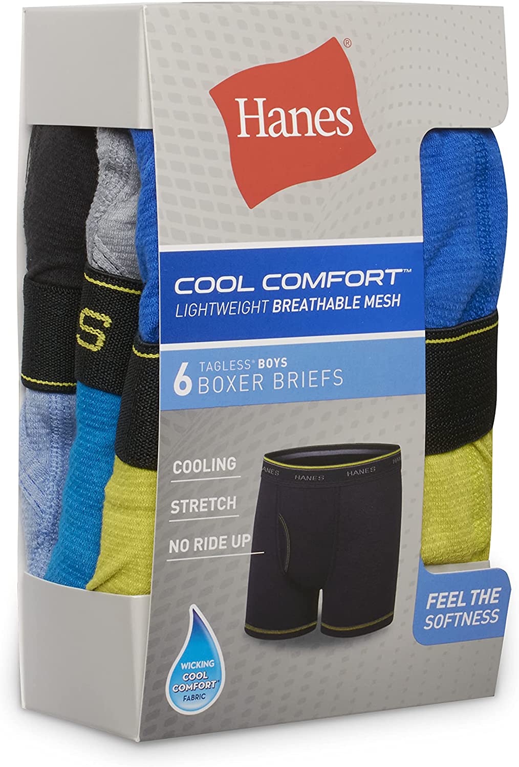 Hanes Boys' Underwear, Cool Comfort Stretch Mesh Boxer Briefs, 6-Pack