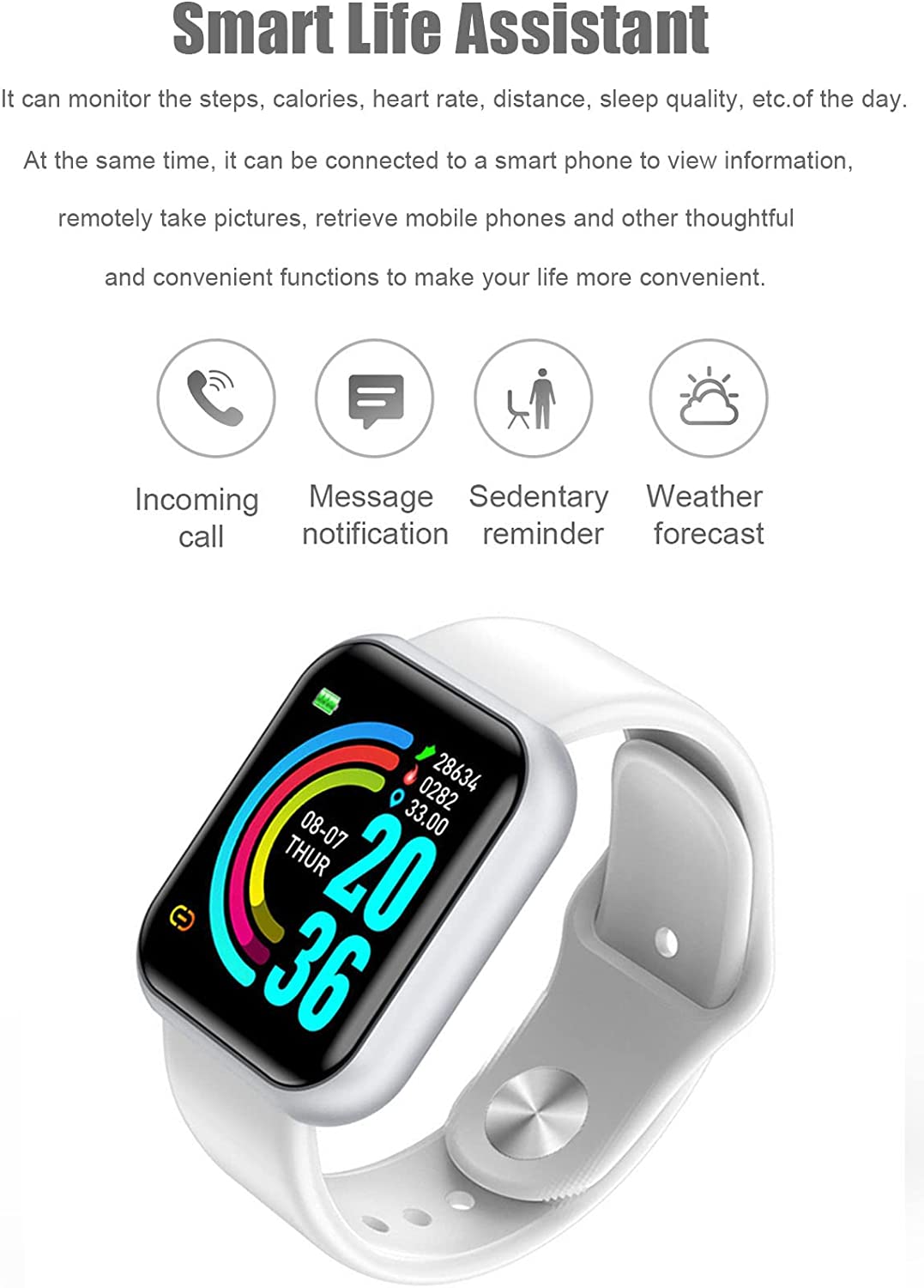 ●Battery Life:With long lasting battery life,the smart watch can be used for 7-10 days after being fully charged. Standby for more than 20 days.