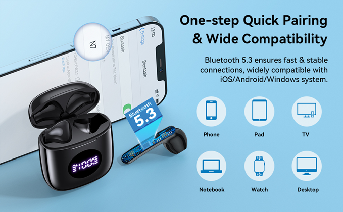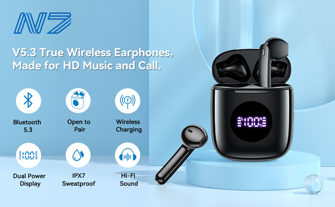 * Benefit from the advanced Bluetooth 5.3 technology, whether you are watching a movie or listening to music, these N7 Bluetooth earbuds always delivers a stable, zero latency wireless connection for high-quality sound.