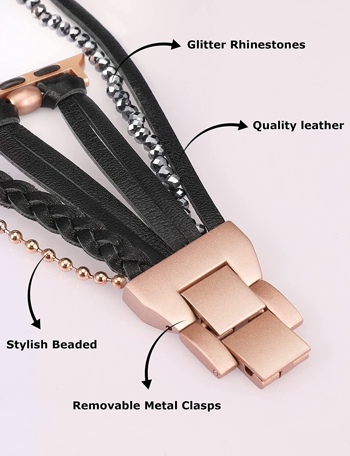 So Elegance and Eye-catching Design: Vintage elegance multilayer bracelets are made of high-quality faux leather and hand-woven, with high quality solid stainless steel links for easy resizing, won't pilling or peeling off. Wearing it will make your iwatch more fashionable and youthful. Exactly what you are looking for as far as a both casual and Bohemian style watch band.