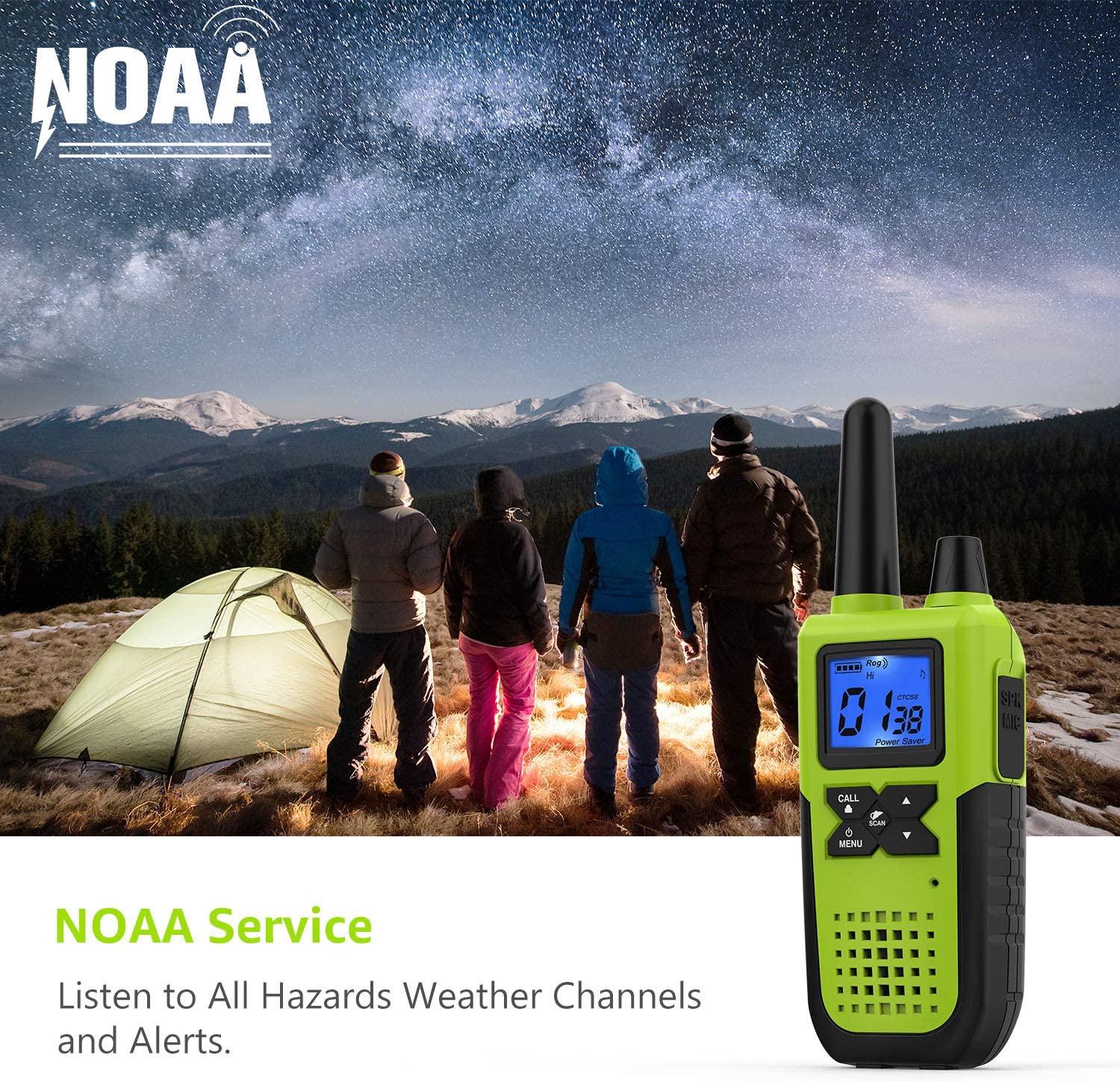 - ? 【NOAA Weather Scan and Alert】:The super power walkie talkies 2 way radio support NOAA's National Weather Service, it can scan 10 NOAA radio channels transmitting in your area. If you turn on the weather alert function, the work walkie talkies will auto alert you the warnings from designated NOAA broadcast stations