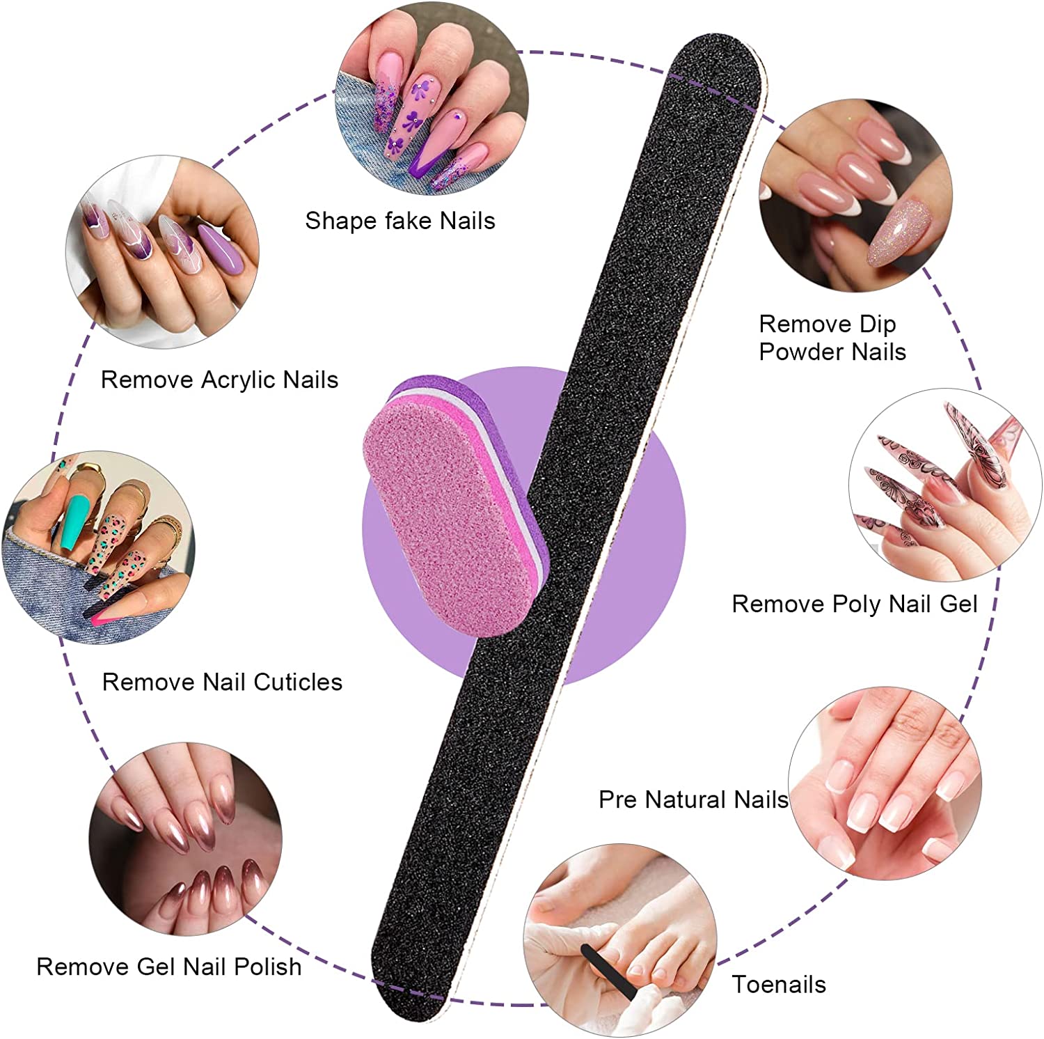 • 100/180 Grit Nail File and Buffer Set: The double-sided emery boards for nails and buffer blocks are 100/180 grit to meet different uses. 100 grits is suitable for coarse grinding, suitable for hard nails, toenails as well as artificial nails. 180 grit is suitable for fine grinding, suitable for finely finishing the edges of nails.
