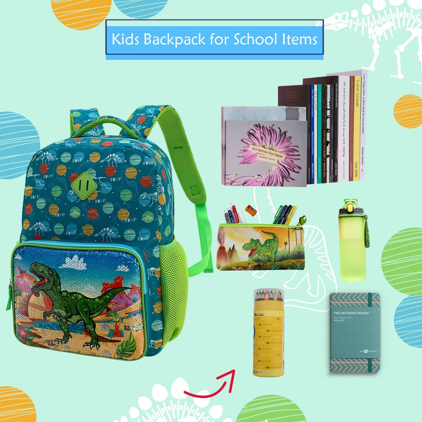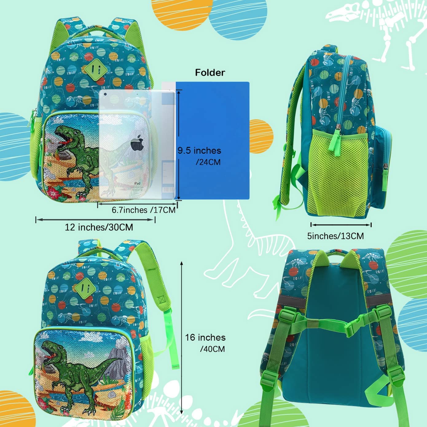 ⭐【Magic Sequins Kids Backpack】: Reversible sparkly sequins with two different dinosaur patterns on front pocket by swiping the sequins. It is cute and attractive for little boys in kindergarten or elementary preschool ages from 4-10 years old.