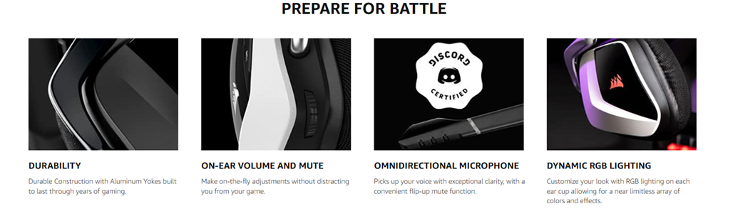 Immerse yourself in the action with the Corsair void RGB Elite wireless, with custom-tuned 50mm neodymium audio drivers delivering 7.1 surround sound on the PC. Microfiber mesh fabric and memory foam ear pads provide lasting comfort. Connect to your PC or PS4 with a low-latency 2.4GHz wireless connection, with a range of up to 40ft and all-day battery life up to 16 hours. An omnidirectional microphone with LED mute indicator ensures that you're heard with exceptional vocal clarity. The void RGB Elite's distinctive design and durable construction are complemented by fully customizable RGB lighting on each ear cup. Powerful Corsair iCUE software ties everything together, enabling full control over equalizer settings, 7.1 surround sound, RGB lighting and more.