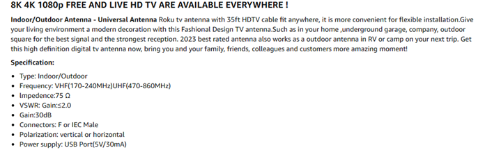 • ? 【HIGH QUALITY MATERIAL AND DESIGN】- The new environmentally friendly flame retardant material bring moisture and lightning protection to our indoor outdoor HDTV antennas. Upscale design fits any indoor or outdoor scences. You’ll be ready to enjoy local channels near you!