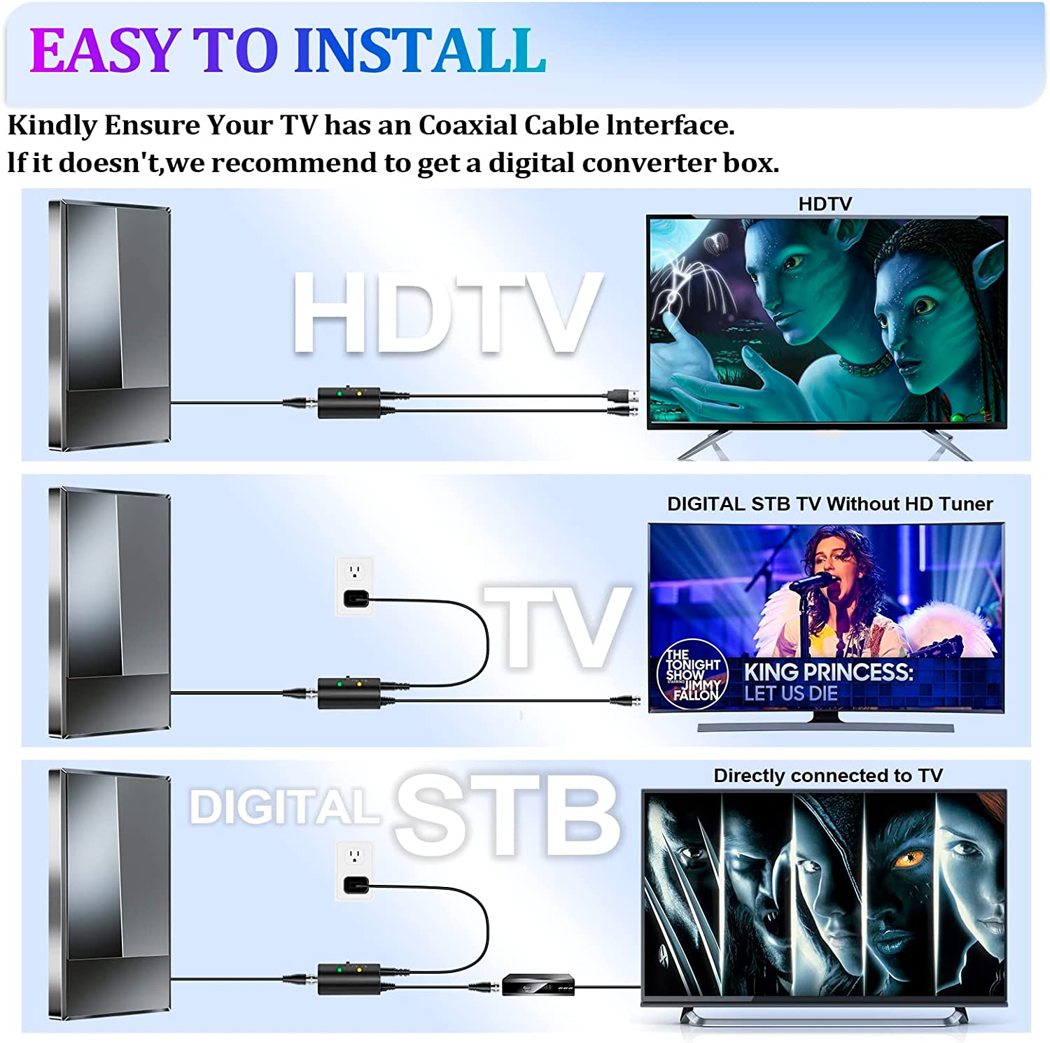 • ?▷【UPGRADED TO 800+ MILE LONG RANGE】- TV antenna for smart tv, equip with 2023 MOST POWERFUL built-in ic chip & HIGH-QUALITY signal amplifier, ensure the stability of signal reception,access to more free channels . Indoor/Outdoor tv antenna has high gain, bring clear pictures, low noise and access to most TV signals.Transfer 8k 4k combination of UHR and HDR video content. You deserved the 2023 Best & Oversized ANTENNA which offers more longer ranges on the market and lndustry-leading Power!