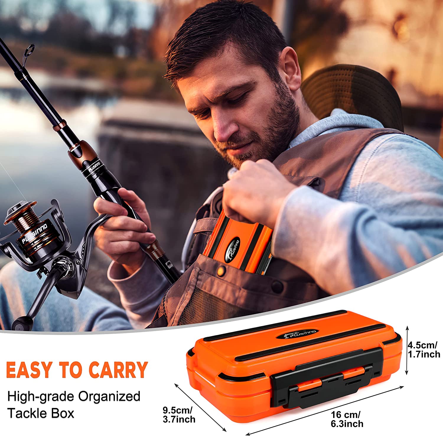 • 【Compact & Organized Tackle Box】- The box is made of heavy-duty plastic, with an anti-collision shock-absorbing strip, and a high-strength lever-type edge lock, super sturdy and durable! Internal transparent lids, anti-open lock buckle, and adjustable compartments make all items well sorted storing easy identification and access. Plus, the perfect small size (6.3" x 3.7" x 1.8") makes it easily fits in your fishing seat box or backpack, take it around and enjoy fishing anywhere.