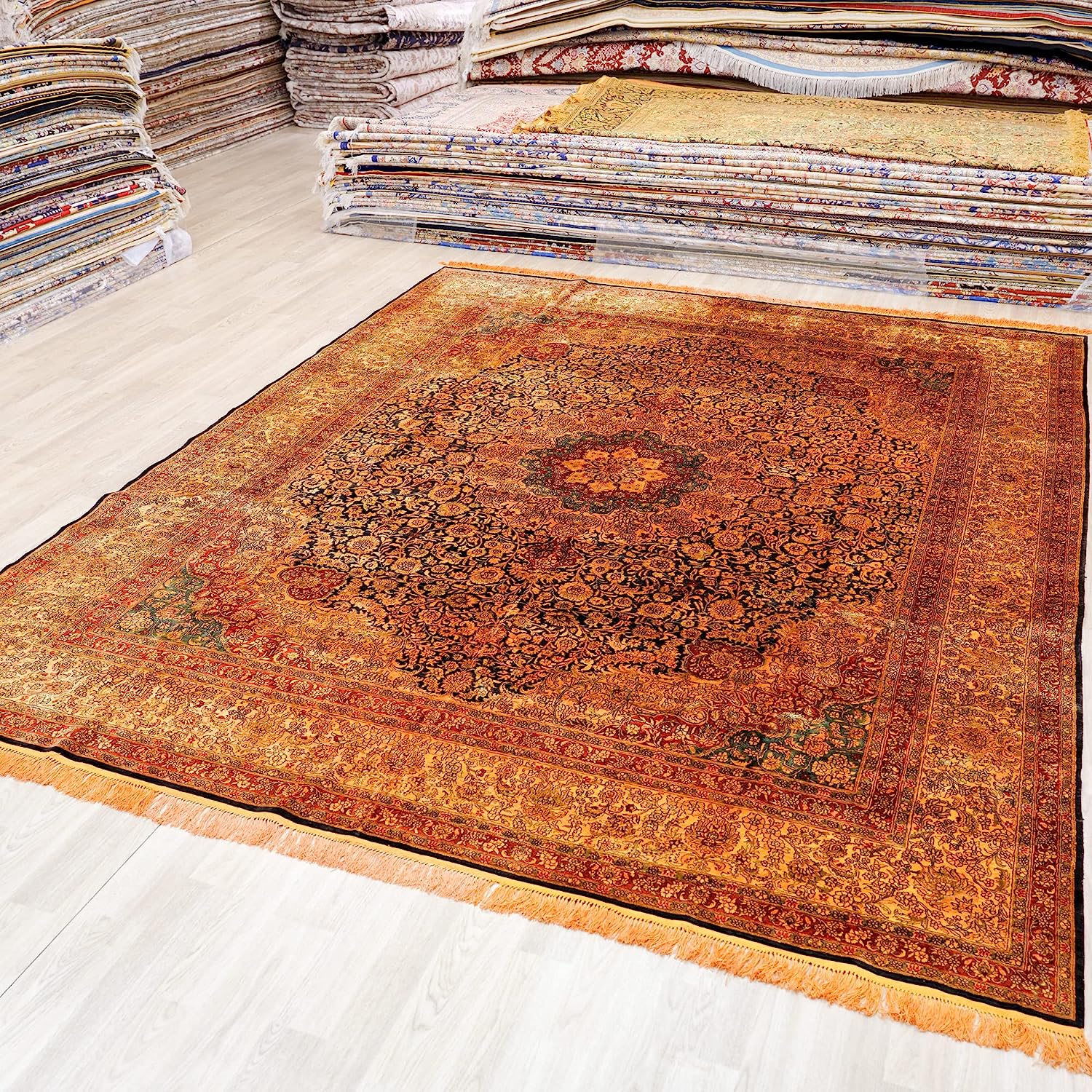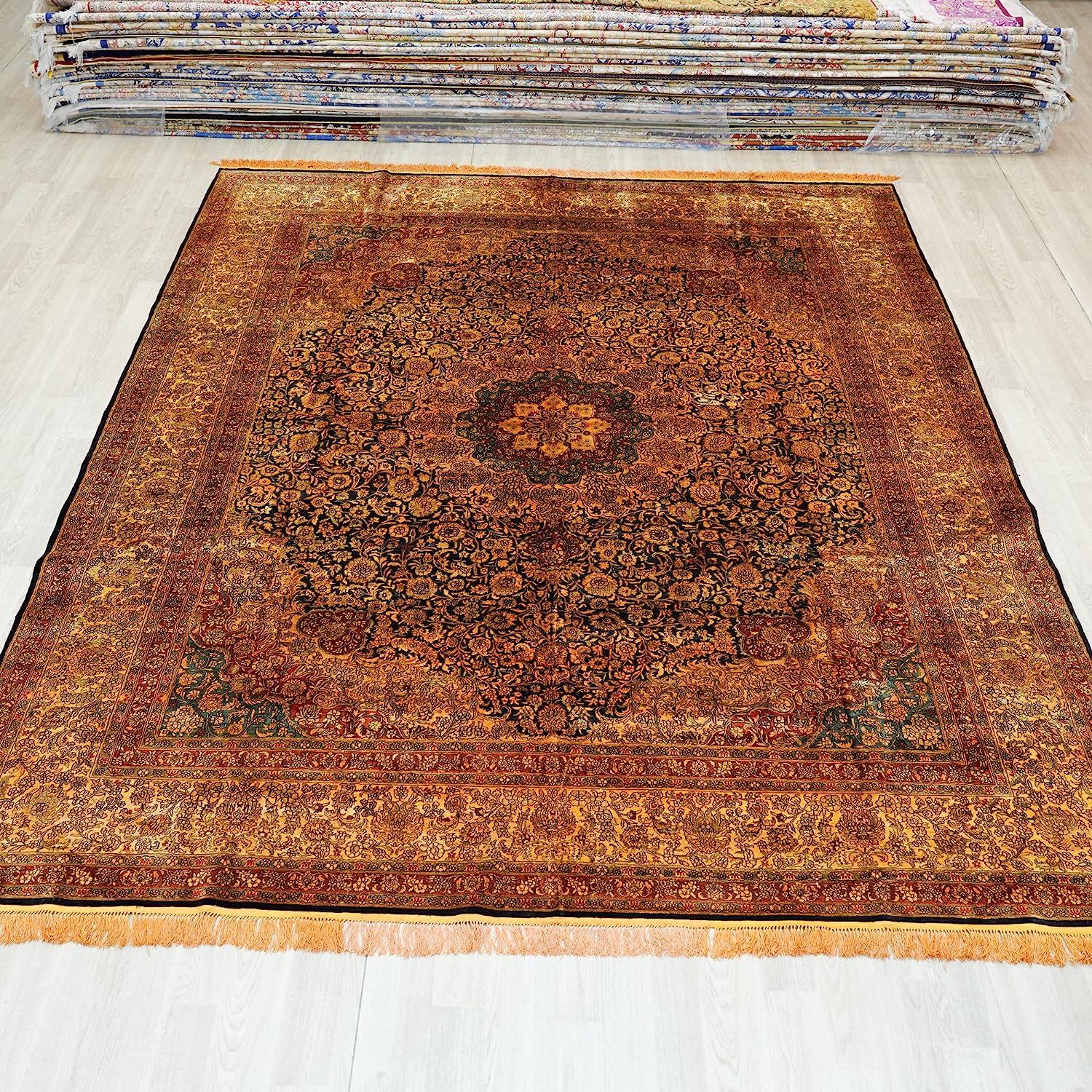 Compared with the machine-made rugs, handmade silk rugs are much softer and more comfortable,