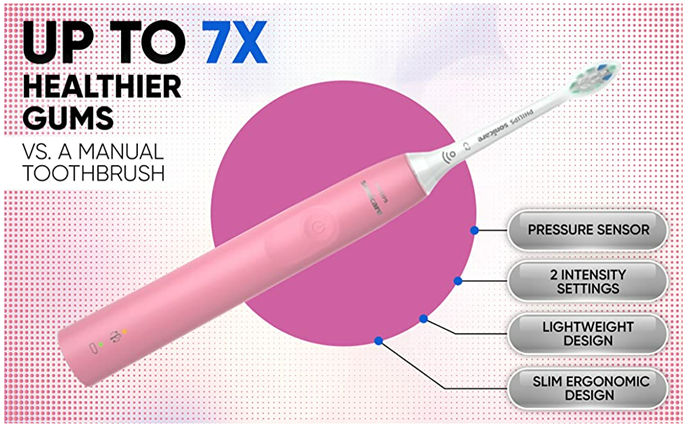 Pressure Sensor helps protect your teeth and gums - Built-in pressure sensor automatically detects pressure you apply, warns you, and reduces the toothbrush vibrations automatically to help protect your gums. The toothbrush will make a pulsing sound as a reminder to ease off the pressure. 7 out of 10 people found this feature helped them become better brushers.
