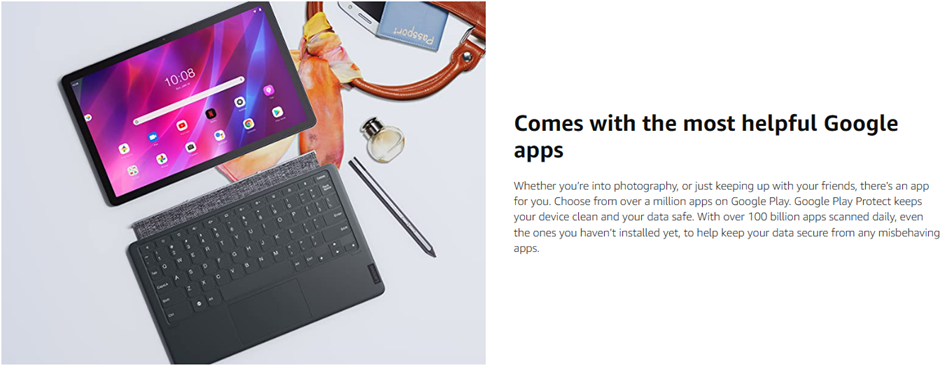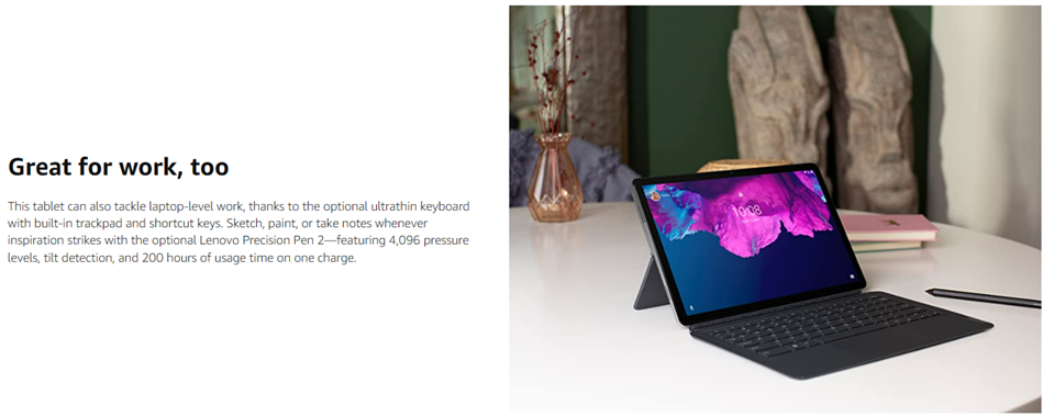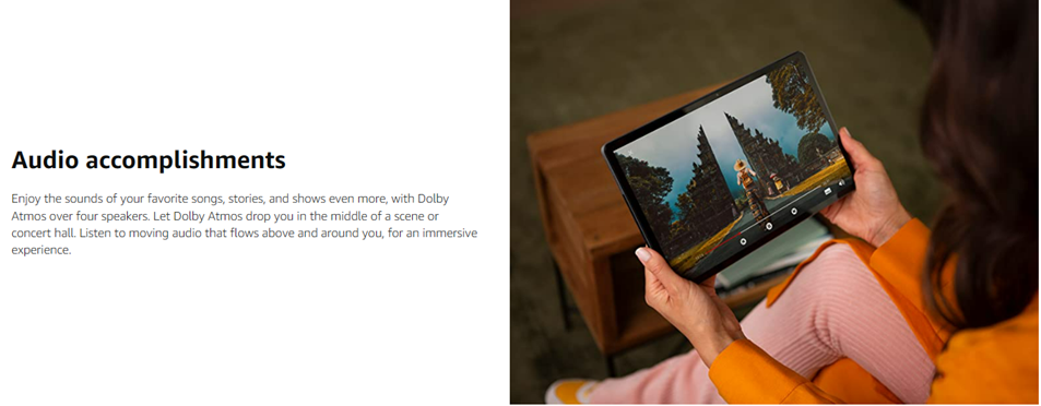 • Find a deeper connection with all the songs, stories, and shows you love with Dolby Atmos over four speakers on the Lenovo Tab P11 Plus