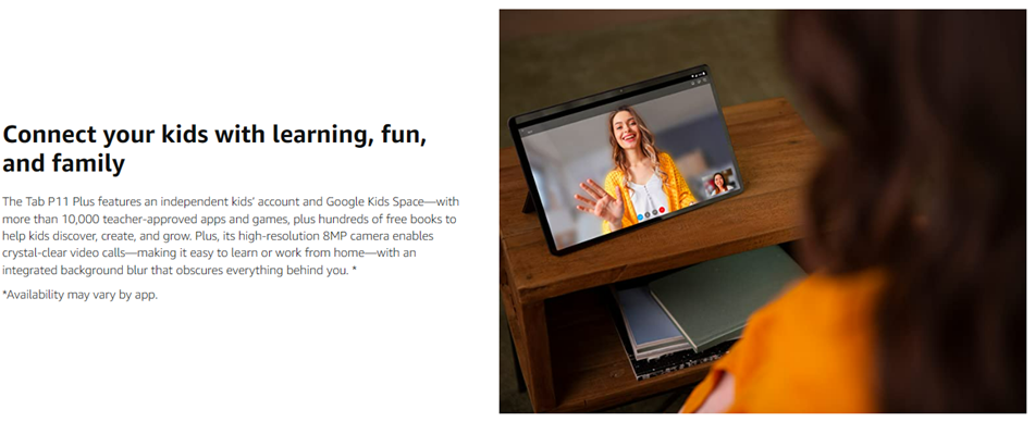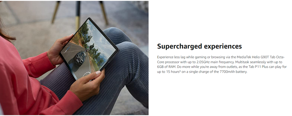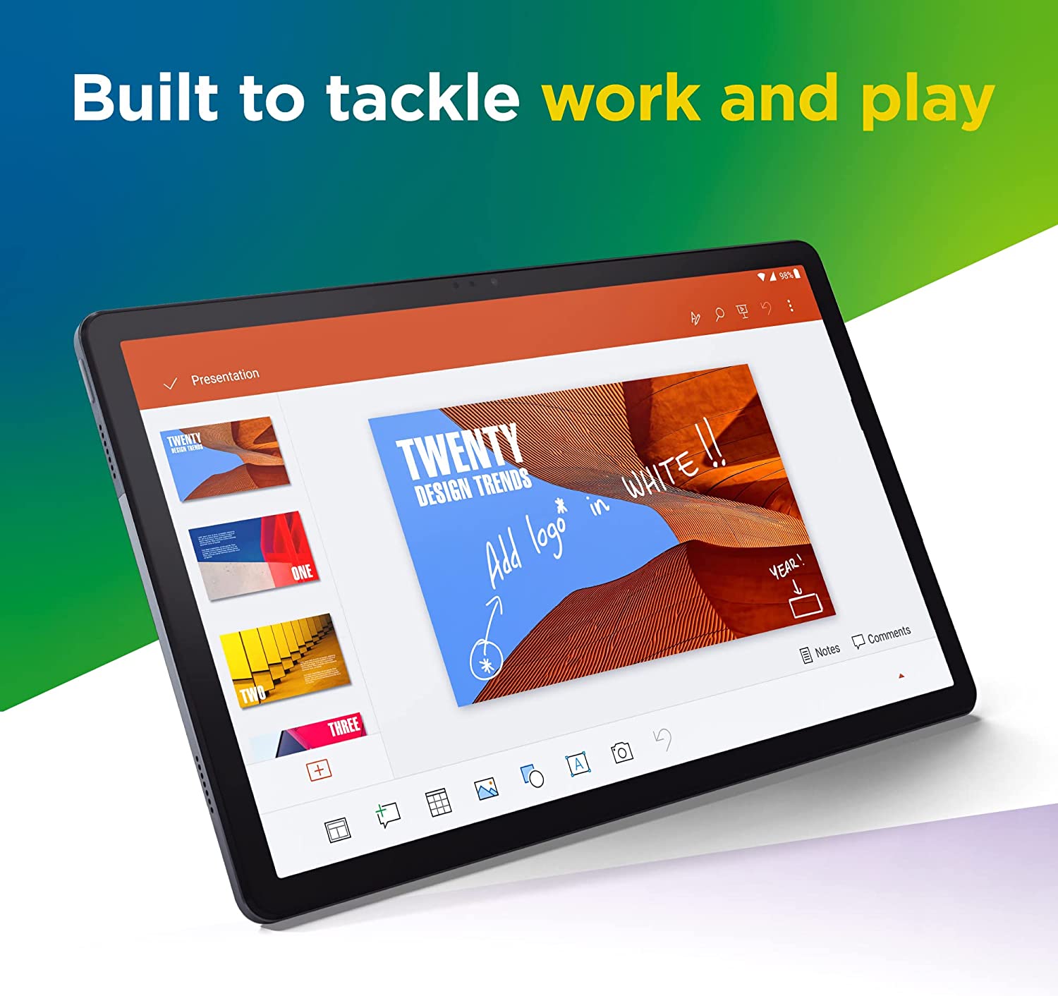 • Do more while you're away from home – the Tab P11 Plus runs on up to 15 hours of streaming time on a single battery charge, plus it connects wirelessly via Bluetooth and Wi-Fi
