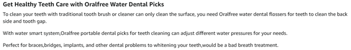 - ORALFREE ORAL IRRIGATOR PERFESSIONAL CUSTOMER SERVICE: 12 months after-sale service and friendly customer service. Oralfree is focus on helping customer to keep their mouth hygiene, guard their teeth health and Oralfree manufactured under strict quality standards to give our customers great experience, It's the great gift for friends