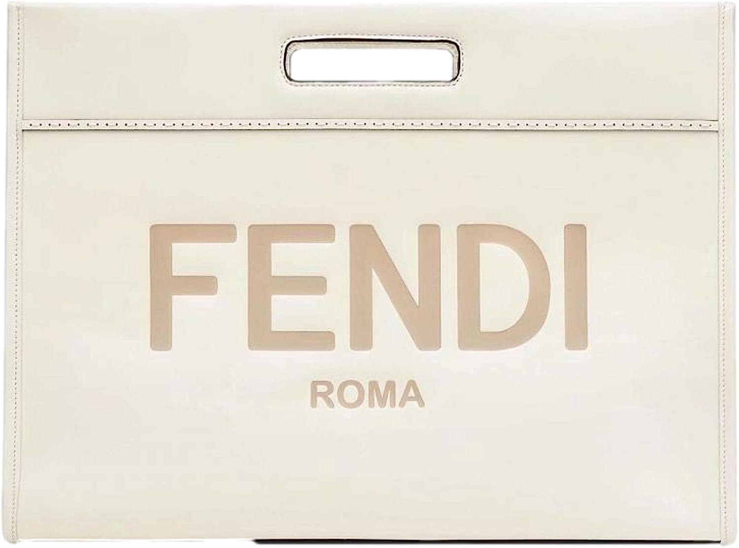 FENDI Logo 2-Way Smooth Ivory Leather Tote Bag 7VA480