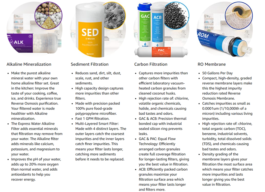 - Reverse Osmosis Replacement Water Filters: Experience what water should taste like with the Express Water reverse osmosis water filtration system removing up to 99.99% of impurities.