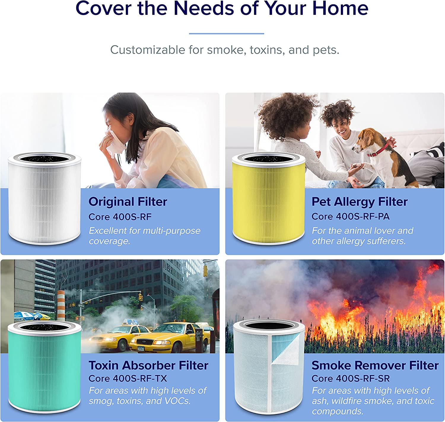 - COMBAT ALLERGIES AND ASTHMA: Powerful air purification during allergy and wildfire seasons helps capture allergens that cause sneezing, congestion, breathing difficulties, and other symptoms