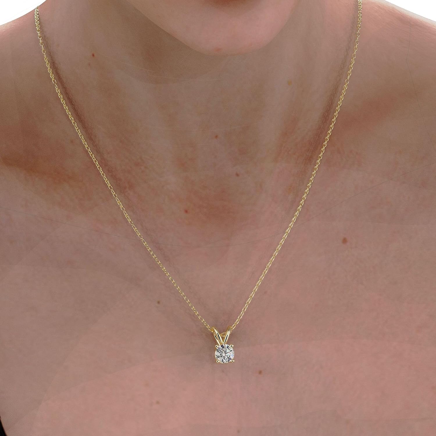This stunning 14k yellow gold diamond pendant is the perfect addition to any jewelry collection. The pendant features a round brilliant shape diamond that is 0.50 carats and has a very good quality rating. It is set in a 4 prong setting and is made by Moti Ganz Jewelry.