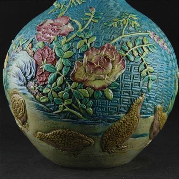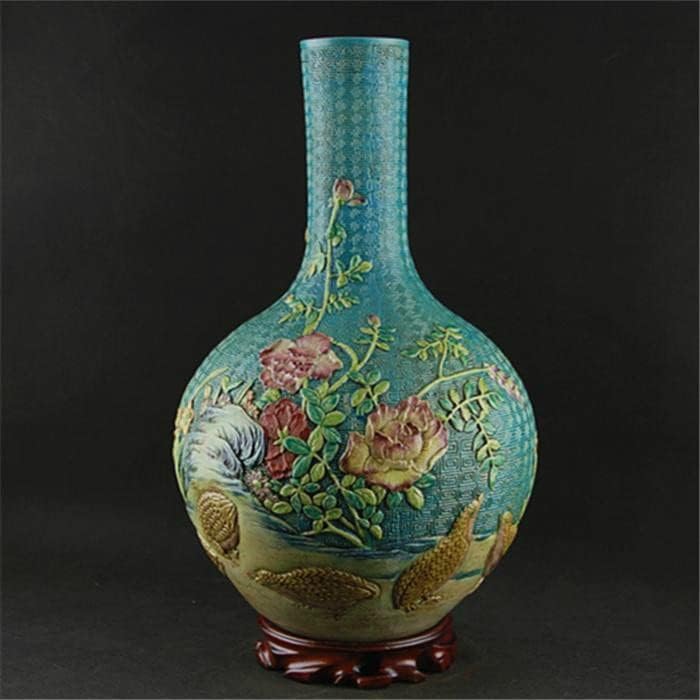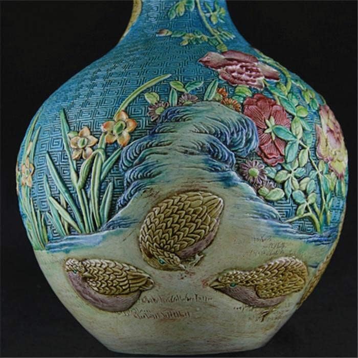 Boge Classic Green Ceramic Vase Embossment Antique Porcelain Flower Vase for Decoration