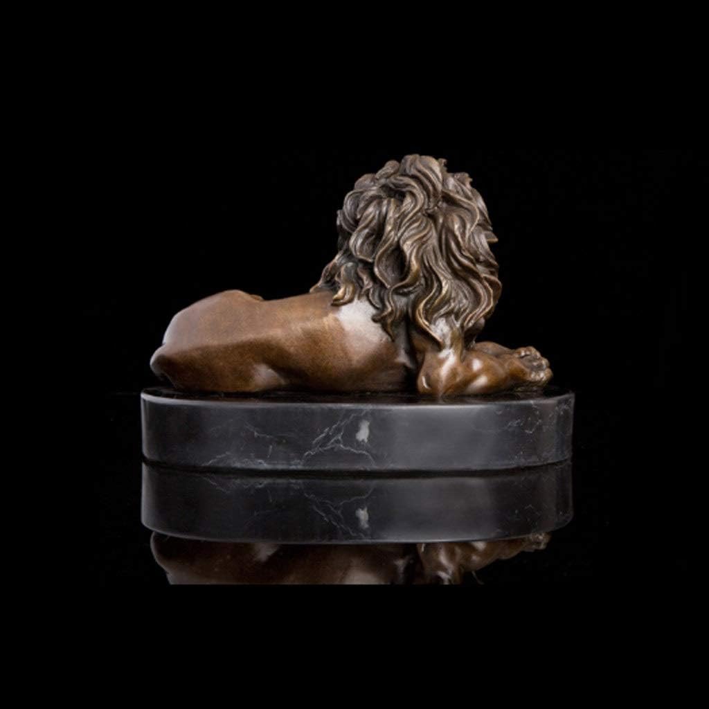 MJWDP Bronze Sculpture Lying Lion Statue Figurine Antique Wildlife Metal Art for Home Decoration