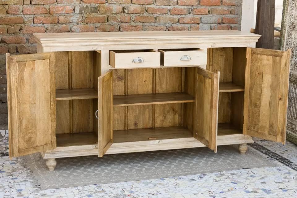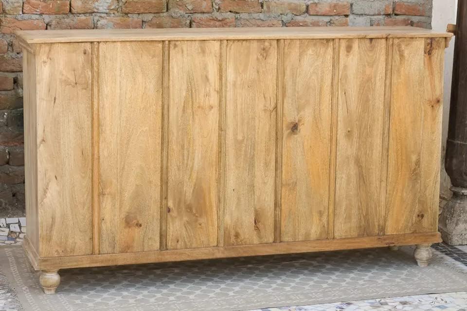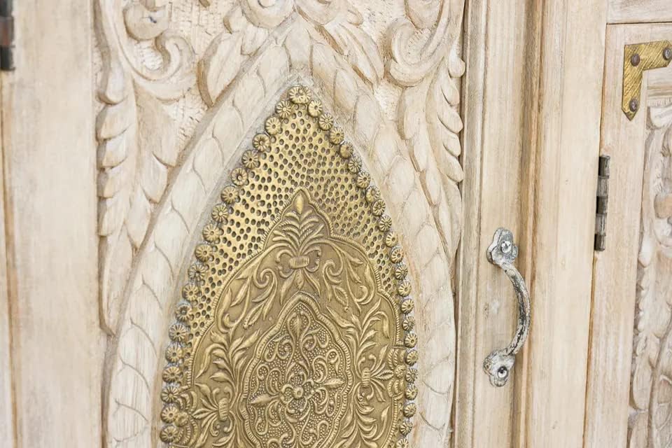 Antique Indian Brass Work Hand Carved Solid Wooden Sideboard Whitewash Mango Wood Indian Arched Sideboard Cabinet Storage Units Indian Solid Wood Finish,Living Room Bedroom Furniture,Modern Sideboard
