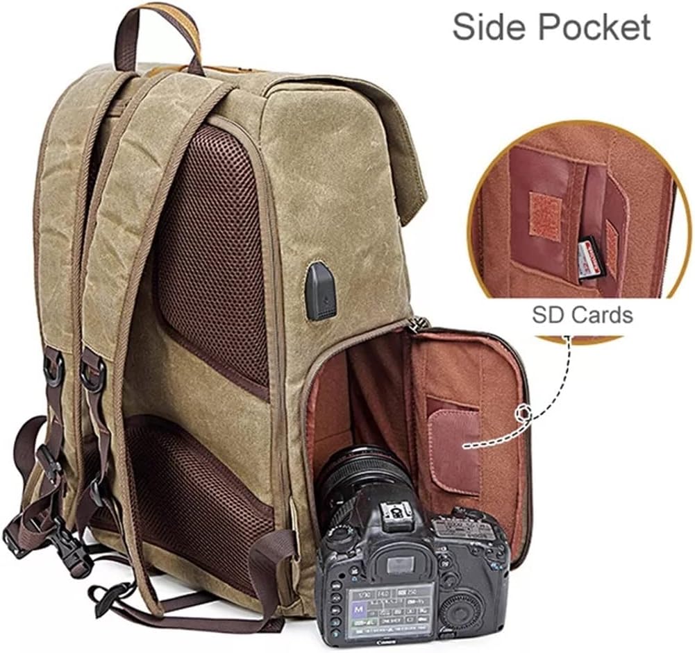 SXDS Photography Retro Waterproof Batik Canvas Backpack W USB Port Fit 15.6inch Laptop Men Camera Bag Carry Case (Color : Gray, Size : 28 * 16 * 43cm)