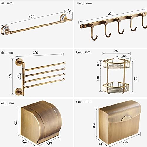 ZSEDP Antique Bathroom Blue and White Porcelain Accessories Carved Copper-Alloy Hardware Set Wall Mounted Bathroom Hardware Kit